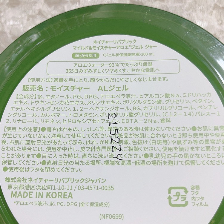 商品詳細情報ネイチャーリパブリック マイルド&モイスチャーアロエジェル