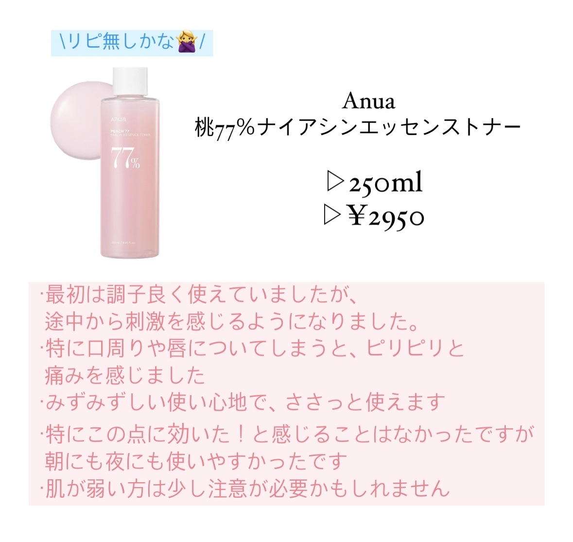 Anua 桃77%ナイアシンエッセンストナー 250ml |