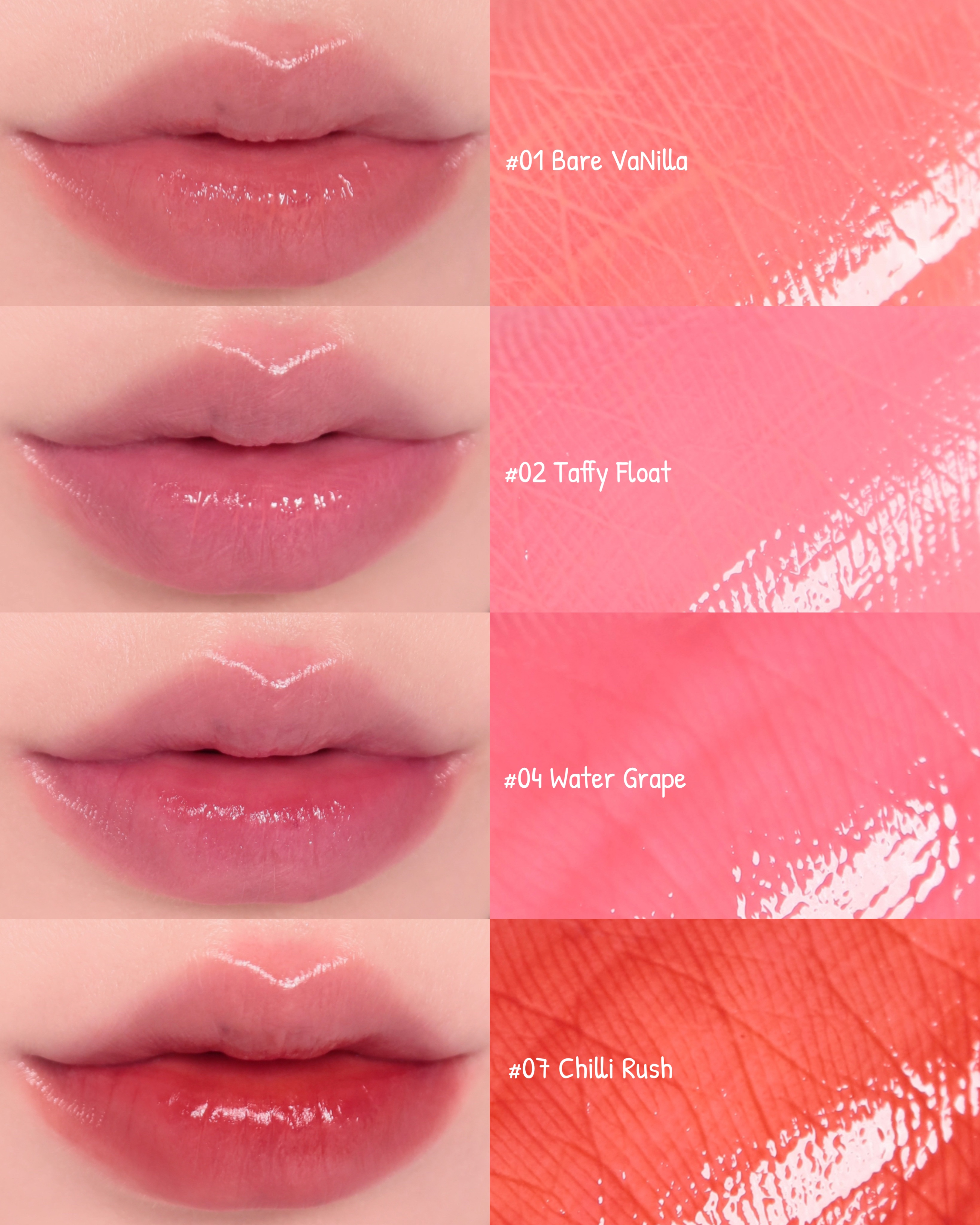 - <01 ベアバニラ> 水、BG、オクチルドデカノール、グリセリン、ペンチレングリコール、DPG、PEG-60水添ヒマシ油、フェノキシエタノール、ポリアクリロイルジメチルタウリンNa、ジメチコン、酸化チタン、クロレラエキス、グルコース、ポリアクリレートクロスポリマー-6、(ジメチコン/ビニルジメチコン)クロスポリマー、フルクトオリゴ糖、フルクトース、エチルヘキシルグリセリン、赤227、香料、黄4、ミリスチン酸ポリグリセリル-10、エチレンジアミンジコハク酸3Na、黄5、ジラウラミドグルタミドリシンNa、水酸化Al、ポリアクリル酸アンモニウム、1,2-ヘキサンジオール、青1、アルギニン、カルボマー <02 タフィーフロート> 水、BG、オクチルドデカノール、グリセリン、ペンチレングリコール、DPG、PEG-60水添ヒマシ油、フェノキシエタノール、ポリアクリロイルジメチルタウリンNa、ジメチコン、酸化チタン、クロレラエキス、グルコース、ポリアクリレートクロスポリマー-6、(ジメチコン/ビニルジメチコン)クロスポリマー、フルクトオリゴ糖、フルクトース、エチルヘキシルグリセリン、香料、赤227、ミリスチン酸ポリグリセリル-10、エチレンジアミンジコハク酸3Na、ジラウラミドグルタミドリシンNa、黄5、水酸化Al、ポリアクリル酸アンモニウム、黄4、赤104(1)、1,2-ヘキサンジオール、青1、アルギニン、カルボマー <04 ウォーターグレープ> 水、BG、オクチルドデカノール、グリセリン、ペンチレングリコール、DPG、PEG-60水添ヒマシ油、フェノキシエタノール、ポリアクリロイルジメチルタウリンNa、ジメチコン、酸化チタン、クロレラエキス、グルコース、ポリアクリレートクロスポリマー-6、(ジメチコン/ビニルジメチコン)クロスポリマー、フルクトオリゴ糖、フルクトース、エチルヘキシルグリセリン、赤227、香料、ミリスチン酸ポリグリセリル-10、黄5、エチレンジアミンジコハク酸3Na、ジラウラミドグルタミドリシンNa、黄4、水酸化Al、1,2-ヘキサンジオール、ポリアクリル酸アンモニウム、青1、アルギニン、カルボマー <05 アップルウーズ> 水、BG、オクチルドデカノール、グリセリン、ペンチレングリコール、DPG、PEG-60水添ヒマシ油、フェノキシエタノール、ポリアクリロイルジメチルタウリンNa、ジメチコン、クロレラエキス、グルコース、ポリアクリレートクロスポリマー-6、(ジメチコン/ビニルジメチコン)クロスポリマー、赤227、フルクトオリゴ糖、フルクトース、黄5、エチルヘキシルグリセリン、香料、ミリスチン酸ポリグリセリル-10、エチレンジアミンジコハク酸3Na、ジラウラミドグルタミドリシンNa、1,2-ヘキサンジオール、青1、アルギニン、カルボマー <06 ベリーバイト> 水、BG、オクチルドデカノール、グリセリン、ペンチレングリコール、DPG、PEG-60水添ヒマシ油、フェノキシエタノール、ポリアクリロイルジメチルタウリンNa、ジメチコン、クロレラエキス、グルコース、ポリアクリレートクロスポリマー-6、(ジメチコン/ビニルジメチコン)クロスポリマー、フルクトオリゴ糖、フルクトース、エチルヘキシルグリセリン、赤227、香料、黄5、ミリスチン酸ポリグリセリル-10、エチレンジアミンジコハク酸3Na、赤104(1)、ジラウラミドグルタミドリシンNa、1,2-ヘキサンジオール、黄4、青1、アルギニン、カルボマー <07 チリラッシュ> 水、BG、オクチルドデカノール、グリセリン、ペンチレングリコール、DPG、PEG-60水添ヒマシ油、フェノキシエタノール、ポリアクリロイルジメチルタウリンNa、ジメチコン、クロレラエキス、グルコース、ポリアクリレートクロスポリマー-6、黄5、(ジメチコン/ビニルジメチコン)クロスポリマー、フルクトオリゴ糖、フルクトース、赤227、エチルヘキシルグリセリン、香料、酸化チタン、黄4、ミリスチン酸ポリグリセリル-10、エチレンジアミンジコハク酸3Na、ジラウラミドグルタミドリシンNa、1,2-ヘキサンジオール、青1、水酸化Al、ポリアクリル酸アンモニウム、アルギニン、カルボマー