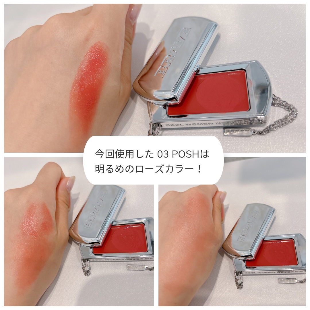 - スライディング容器に入れたBRAYEだけの感性を込めたリップ&チーク。 全10色展開。リンゴ種子オイルが含有されており、リップコンディショニングケアまで。 スッと体温に溶けるバームタイプで高発色で密着力の高いテクスチャー。 専用のストラップとブラシで自分なりの個性あふれる「ユニークなカスタムコスメ」としても、ファッションアイテムとしても大活躍できます。