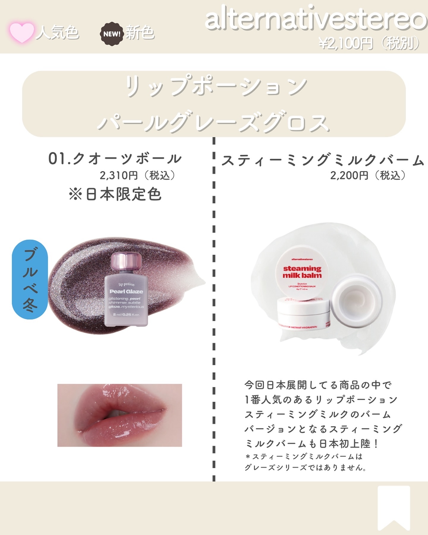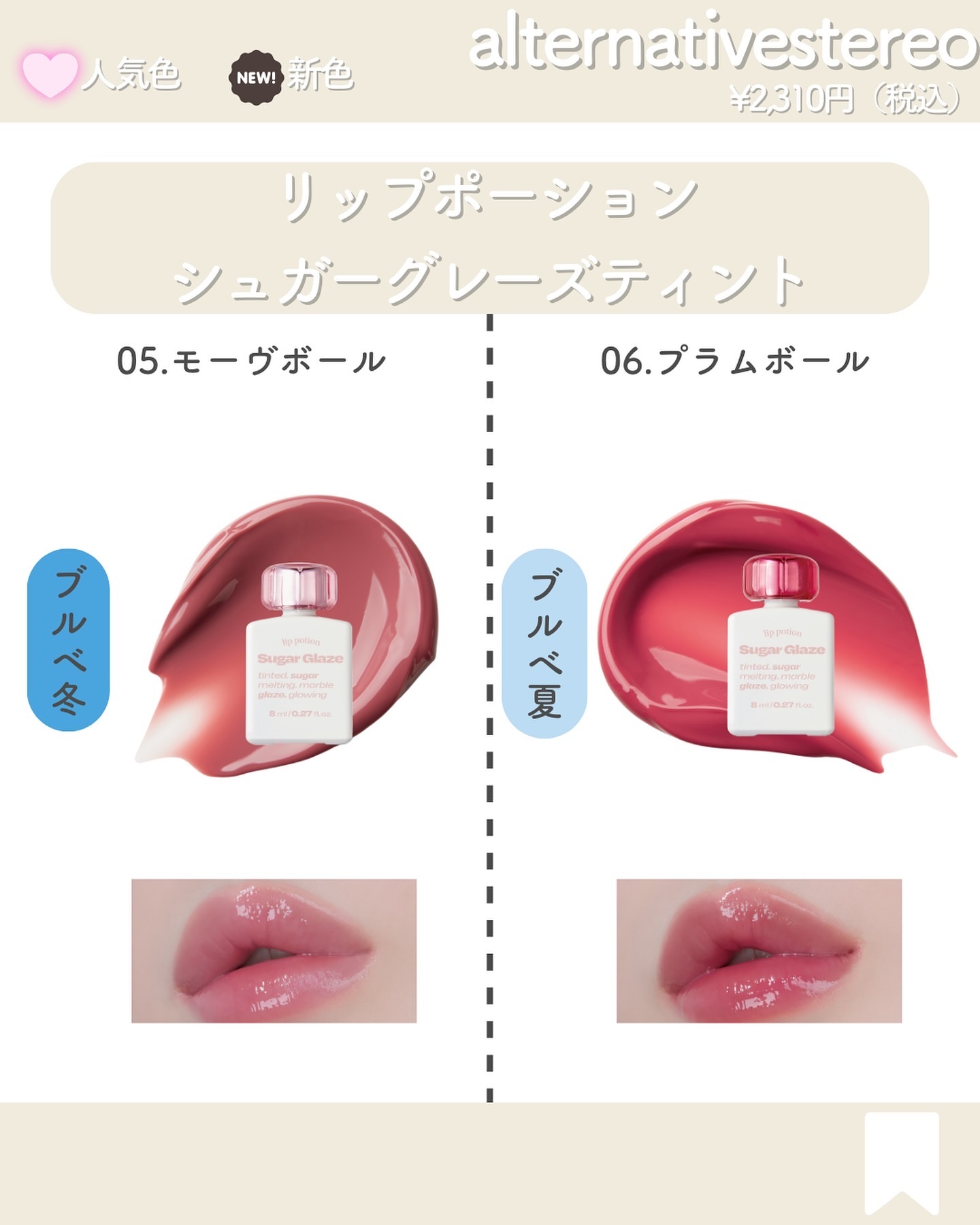 新シリーズが日本初上陸!! この表面のむっちりとした厚めのツヤ、、、ツヤ好きにはたまらないよね🥺🫶 8/31 ロフトで日本先行販売 9/1 発売開始なのでぜひチェックしてね🫶💓 リップポーションシュガーグレーズティント #リップポーションパールグレーズグロス 2,310円