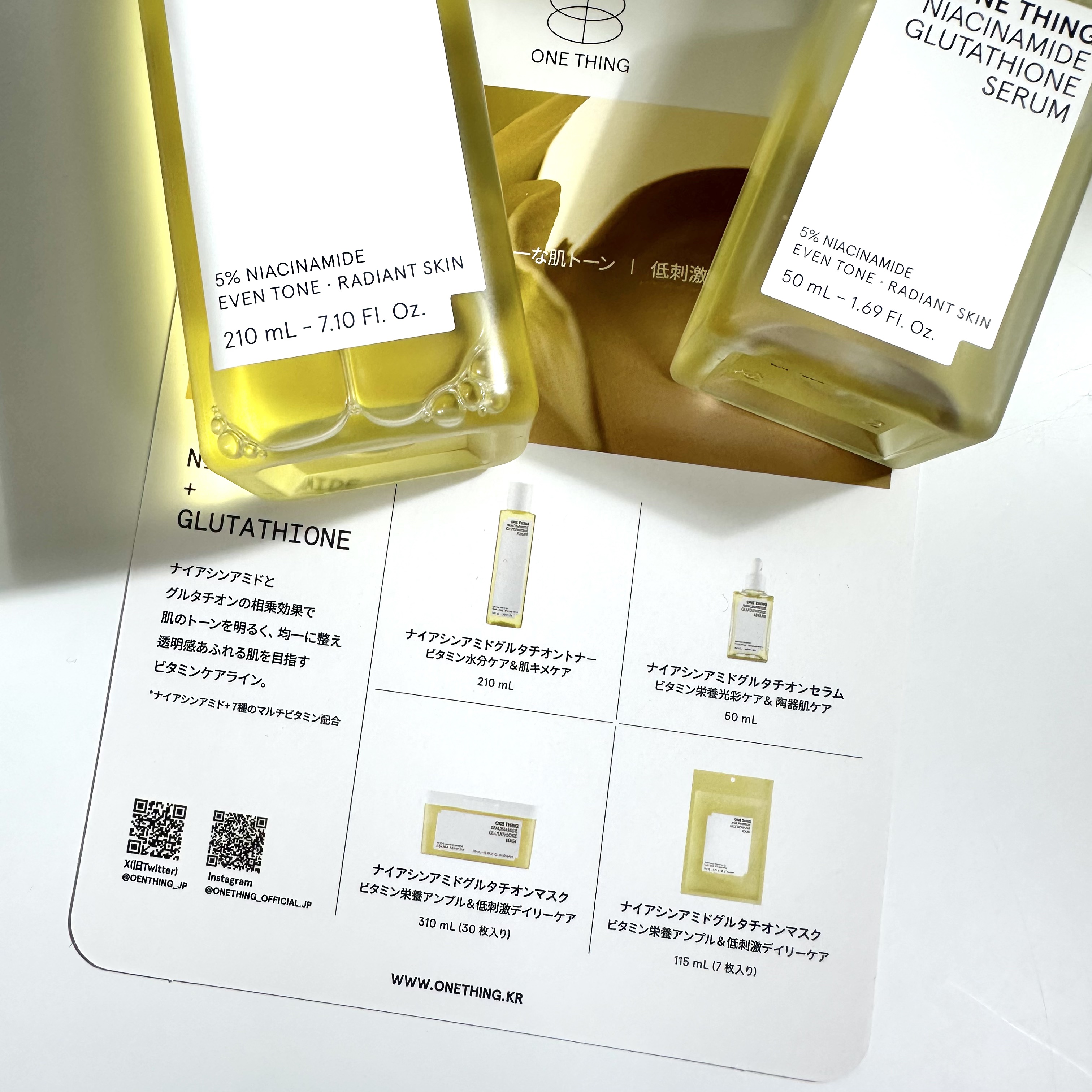 ワンシングの新作ナイアシンアミドグルタチオン3種類💭・ナイアシンアミドグルタチオントナー210ml・ナイアシンアミドグルタチオンセラム50g・ナイアシンアミドグルタチオンマスク(7枚入り)トナーはほんの少しだけトロミがある感じで、夏でもさっぱ...