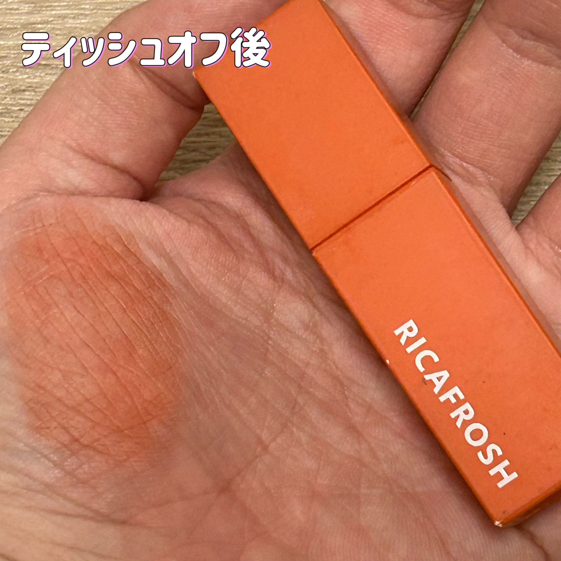 【RICAFROSHジューシーリブティント01オランジェット¥1,848】リカフロッシュ(RICAFROSH)の「ジューシーリブティント」は、人気インフルエンサーの古川優香さんがプロデュースしたリキッドタイプのリップティントです。みずみずしい...