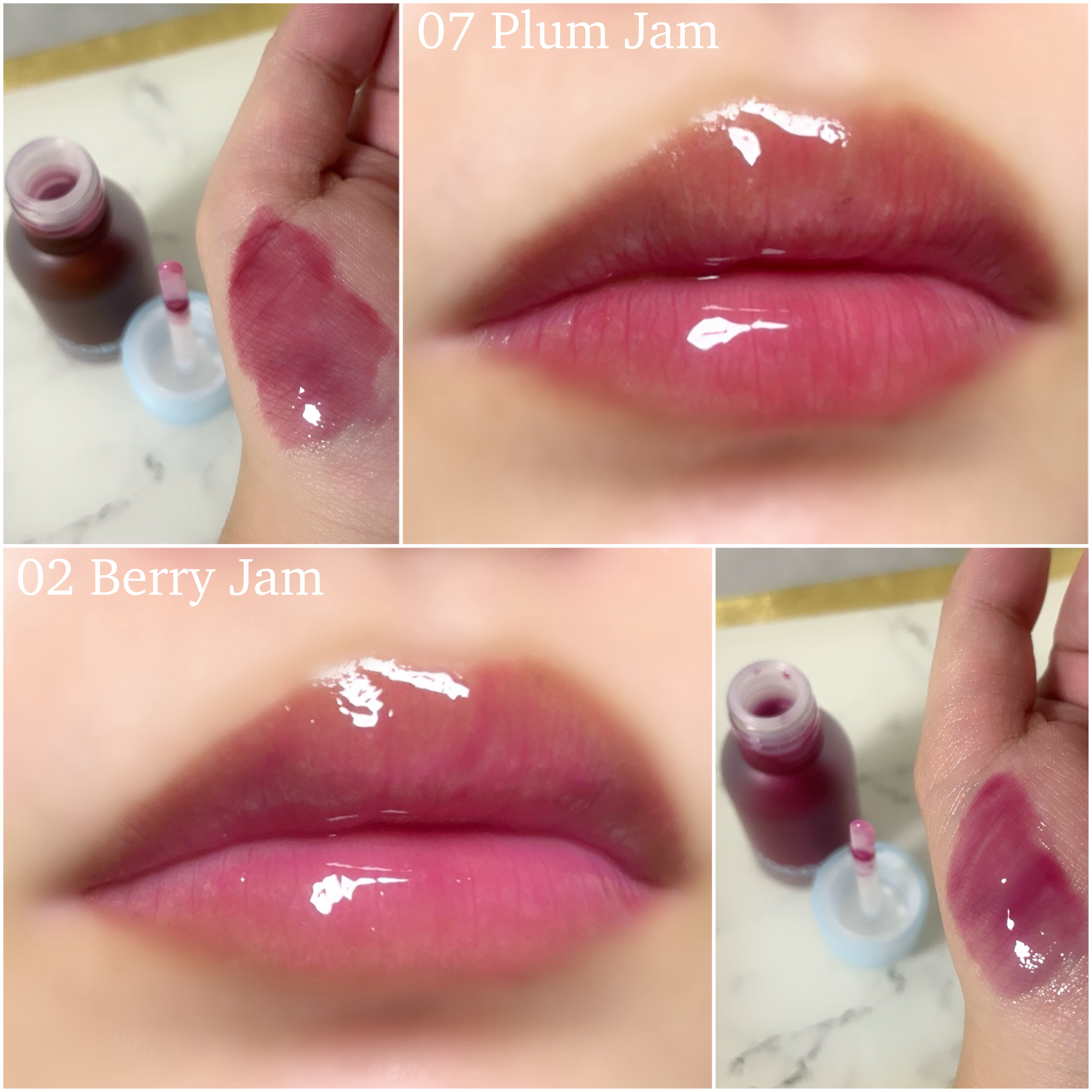手持ちのrom&ndのジューシーラスティングティント、似たような色味が集まっていたので比較してみました♡2枚目は塗りたて、3枚目はティッシュオフした後です!特にティッシュオフ後のほうが色味の比較はしやすいと思います◎▶︎21DEEPSANGR...