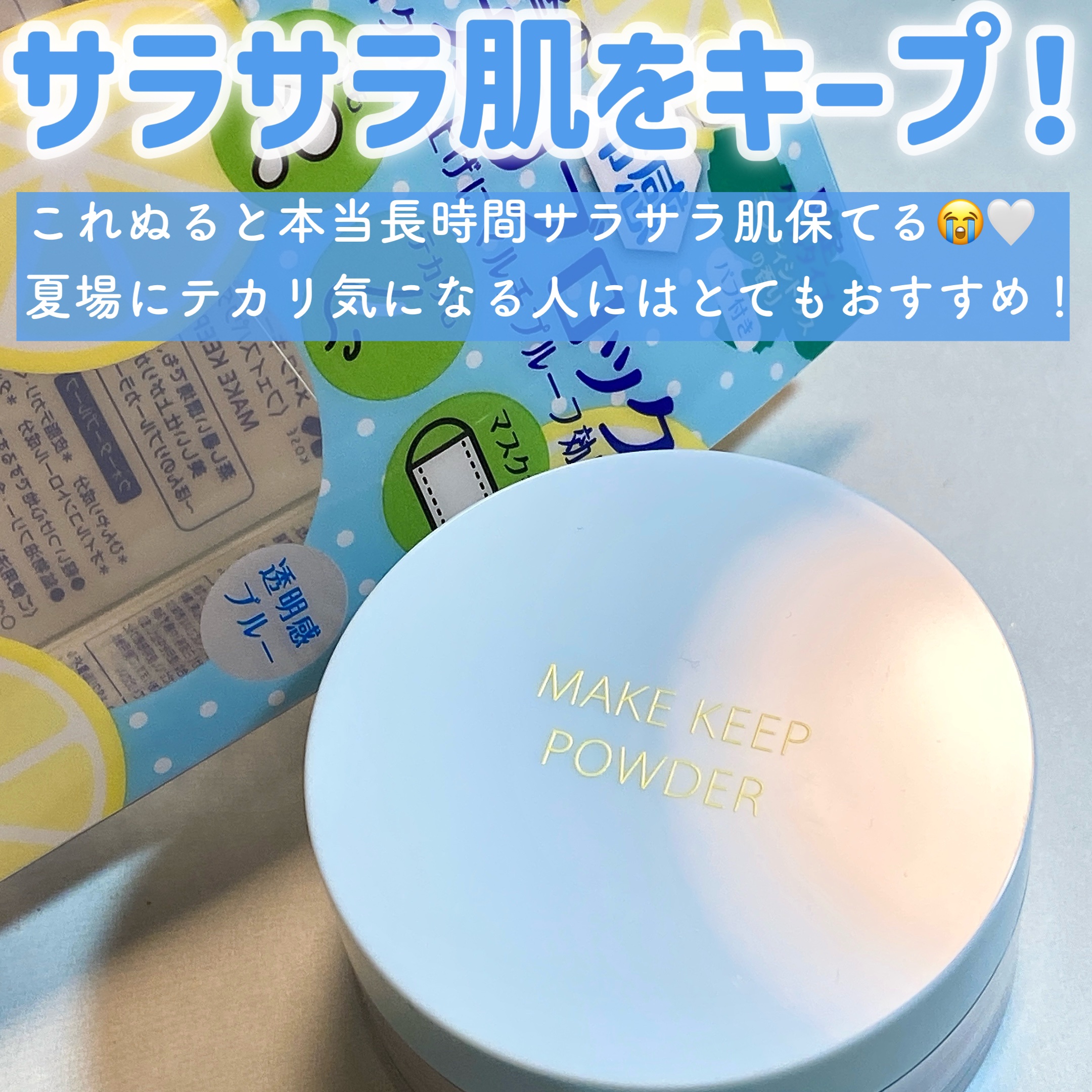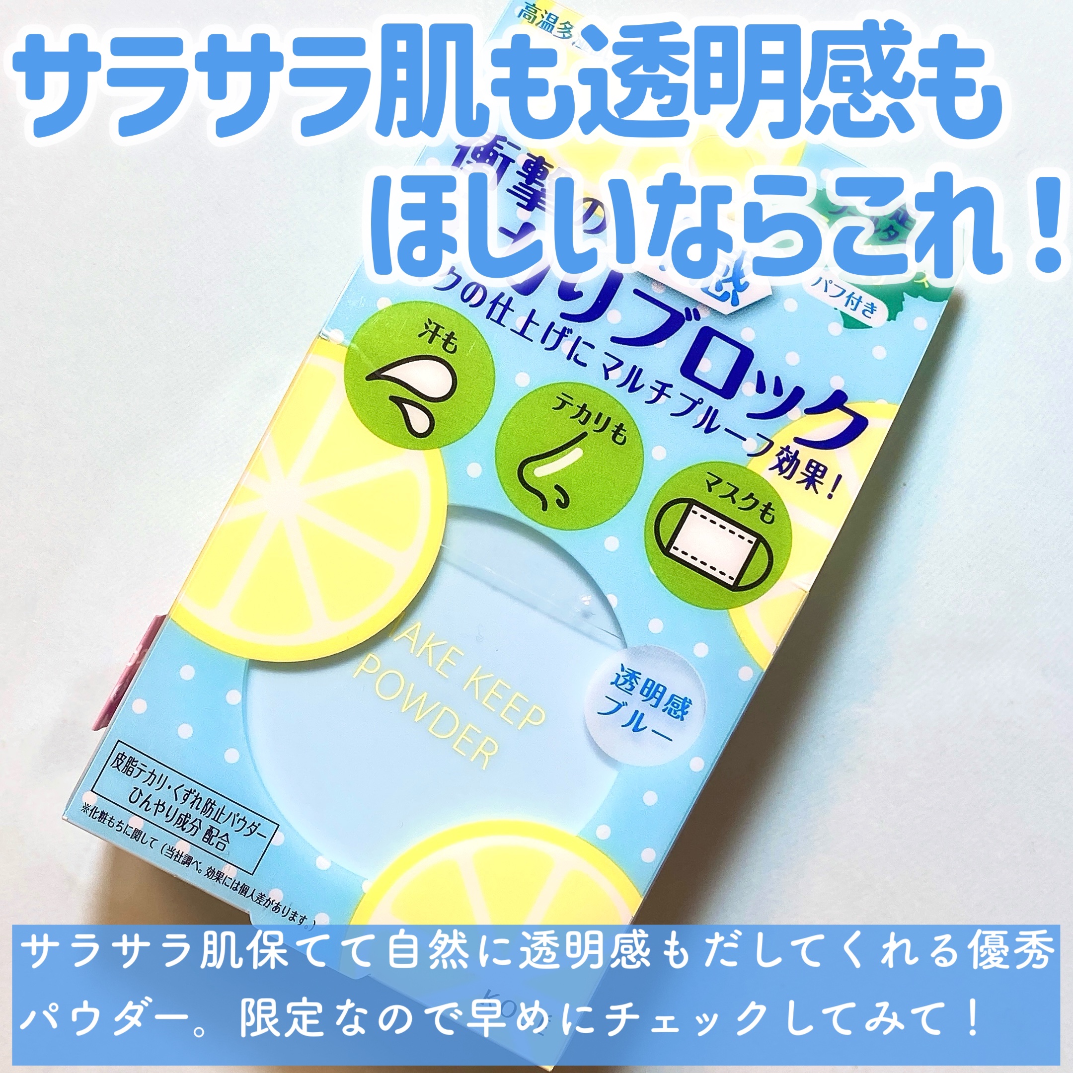 - 皮脂テカリ・くずれを防いでサラ肌に導く 限定クールパウダー ! ひんやり心地よい使用感と、ほんのりブルーで透明感アップ。 ミンティシトラスの香り。