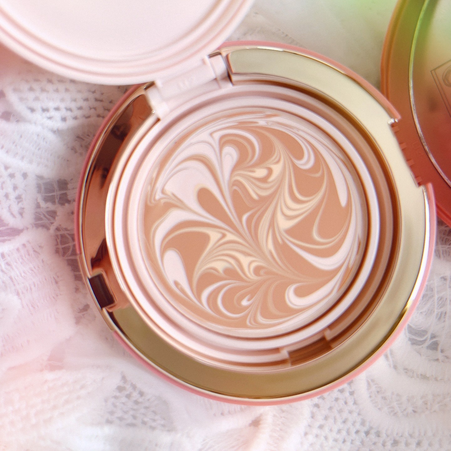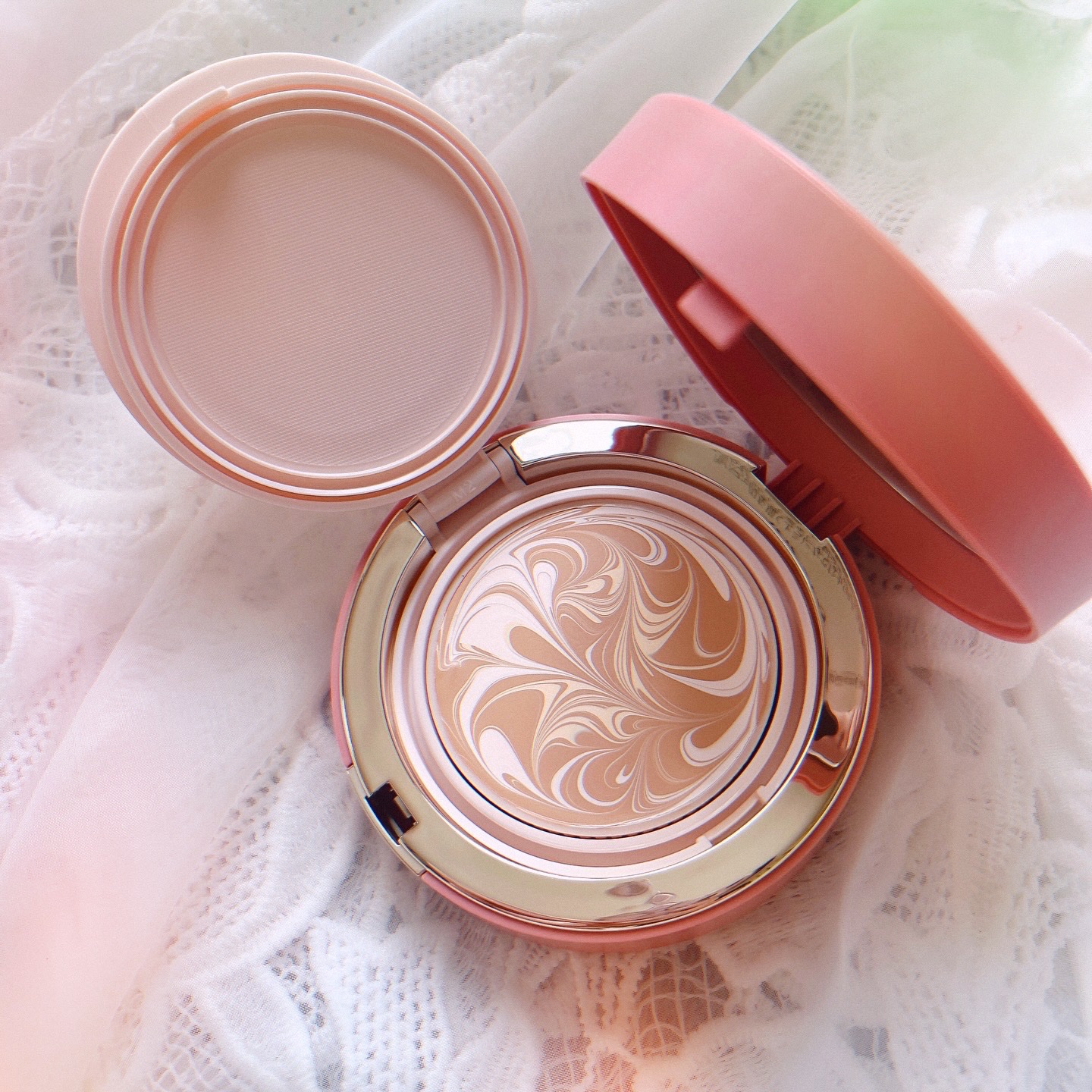 まるでスキンケアをしているみたいな美容液ファンデーション✨ 美容保湿成分が90.7% SPF50+ / PA++++でしっかりUVケアも! ナチュラルなツヤ肌仕上がりで素肌感が強いです◎ 特徴的なマーブル柄のデザインはパフに馴染ませると綺麗なベージュに!