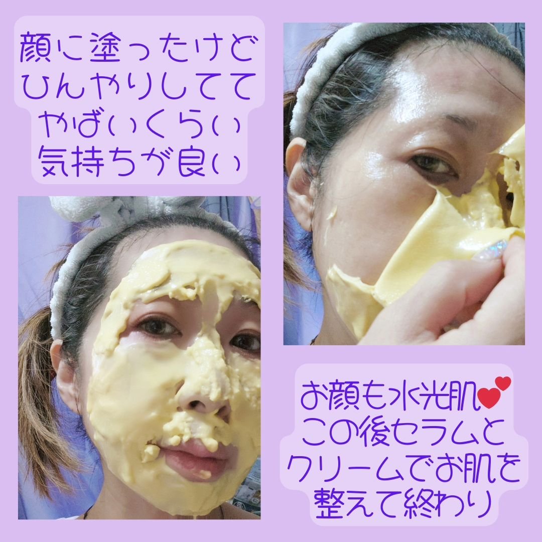 冷たいビタミンセラムの隙間なく肌に密着するモデリングマスク💛 クリームベースの液体が不必要な角質と老廃物を吸着し、水分を肌に届け涼しくクーリングケアしてくれる🥣 時間が経ってもぷるっぷる!! 剥がした後も水分が肌に行き届いてたよぉ😳🤍 簡単にスペシャルホームケアができちゃうから今度友人にエステ気分でやらせてもらおうかな?💓