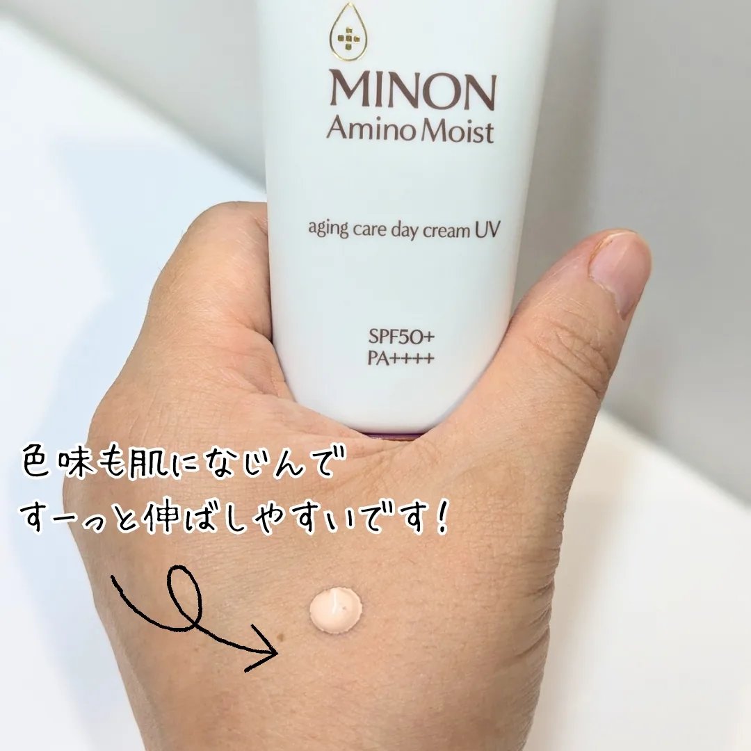 お気に入りのリピUV下地❤️#ミノン#アミノモイストエイジングケアデイクリームUV美容クリームUVカット SPF50+PA++++化粧下地3役のクリームです。何が良いって、紫外線吸収剤フリー&酸化亜鉛フリー!!シワ改善ケア&しみ予防の有効成分...