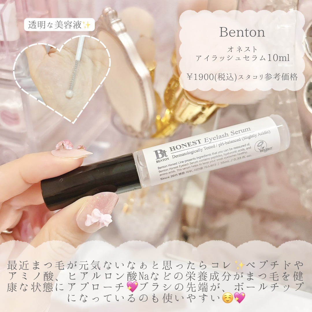 どれもこれもさすがベスコス✨ いい意味で尖ってない、人を選ばないアイテム達です COSRXのプロポリストナーは久しぶりに使ったけどめちゃくちゃ良かった🥺やっぱりこれよね、という感じ BENTONのアイラッシュセラムは初めて使ったけど、まつ毛の長さを測れるスケーラーがついていて本気度を感じた👀✨
