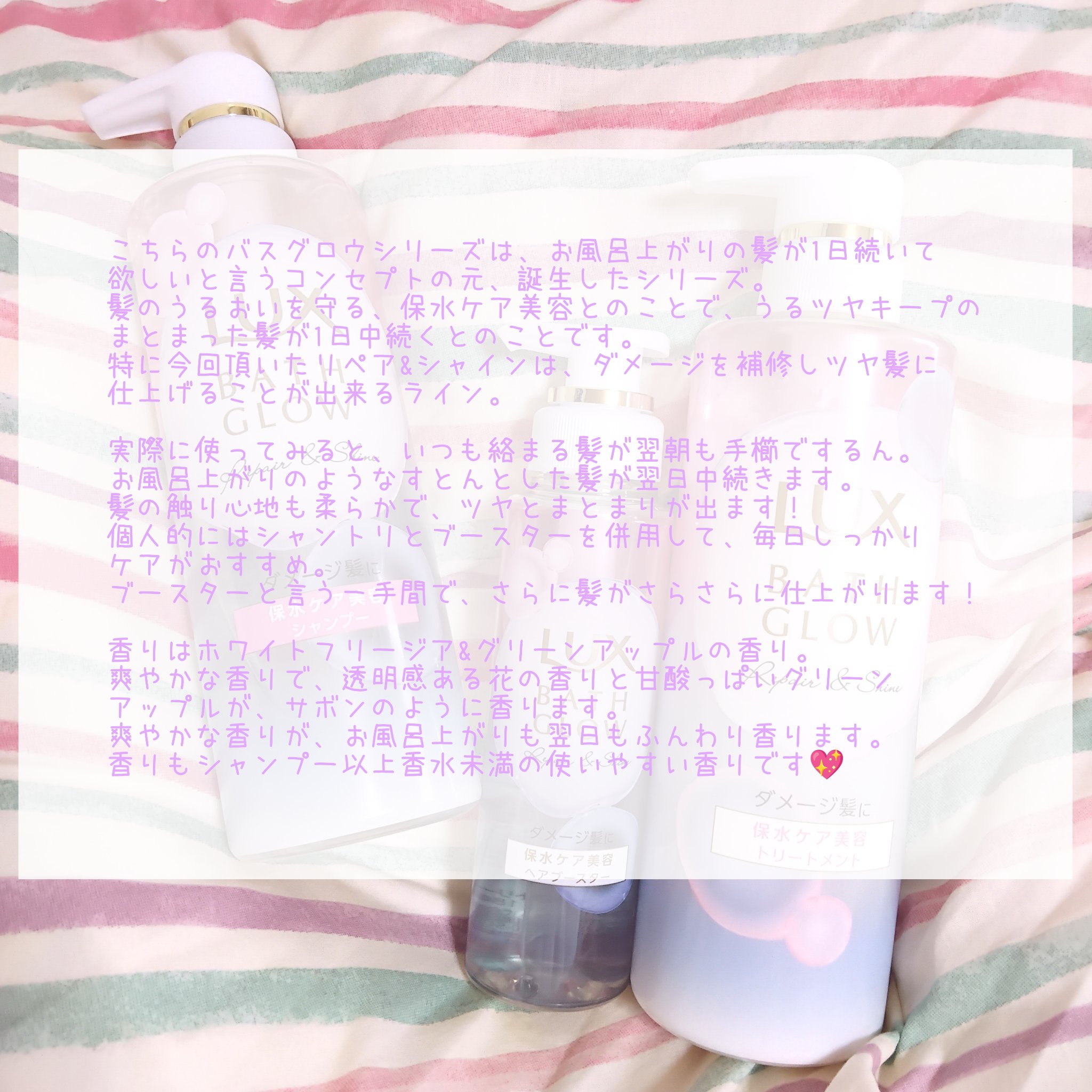 朝、髪がまとまらない原因の1つは髪の水分不足 保水ケア美容で、朝起きてから1日中素直にまとまるツヤ髪へ シャンプーは泡立ち良く洗いやすい印象 ヘアブースターはとろみのあるテクスチャでスッと馴染んでくれてました! 香りはホワイトフリージア&グリーン 清潔感のある優しい香りがお気に入り!