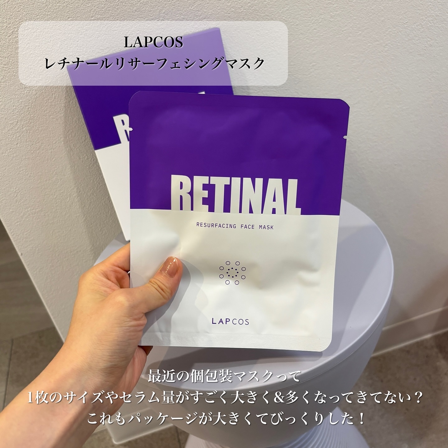 *Thankyou*LAPCOS(@lapcos__japan)様よりレチノールリサーフェシングマスクをいただきました。エイジングケア&ポアケアマスクでシートマスク1枚で弾力ケアができます。たった1回で毛穴、ハリ感、肌のキメが変わって満足度1...
