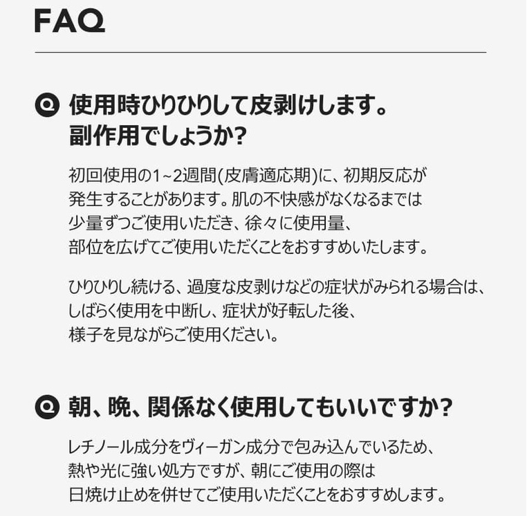- <ヴィーガンリポソームレチノールセラム> 水、BG、エチルヘキサン酸セテアリル、グリセリン、メチルプロパンジオール、トリ( カプリル酸/カプリン酸)グリセリル、マカデミアナッツ、水添レシチン、アブラナステロールズ、レチノール、1,2−ヘキサンジオール、ラウリン酸ポリグリセリル−10、コレステロール、ラウロイルグルタミン酸ジ(オクチルドデシル/フィトステリル/ベヘニル)、テトラ(ジ−t−ブチルヒドロキシヒドロケイヒ酸)ペンタエリスリチル、ステアリン酸水酸化(Al/Mg)、セチルリン酸K、キトサン、クエン酸トリス(テトラメチルヒドロキシピペリジノール)、スクワラン、パンテノール、ジステアリン酸ポリグリセリル−3、クエン酸ステアリン酸グリセリル、クロレラエキス、グルコース、フルクトオリゴ糖、フルクトース、エチルヘキシルグリセリン、(アクリル酸ヒドロキシエチル/アクリロイルジメチルタウリンNa)コポリマー、ベタイン、ポリアクリレートクロスポリマー−6、β−グルカン、(アクリレーツ/アクリル酸アルキル(C10−30))クロスポリマー、トロメタミン、キサンタンガム、メリアアザジラクタ花エキス、カミメボウキ葉エキス、メリアアザジラクタ葉エキス、ウコン根エキス、サンゴモエキス、トコフェロール、アデノシン、アラントイン、カルボマー、乳酸Na、ポリソルベート20、パルミトイルトリペプチド−1、パルミトイルテトラペプチド−7、ヒアルロン酸Na、バクチオール、合成ヒト遺伝子組換デカペプチド−7、合成ヒト遺伝子組換オクタペプチド−4、合成ヒト遺伝子組換ポリペプチド−3、合成ヒト遺伝子組換オリゴペプチド−2、合成ヒト遺伝子組換ポリペプチド−1、合成ヒト遺伝子組換オリゴペプチド−1、合成ヒト遺伝子組換ポリペプチド−22