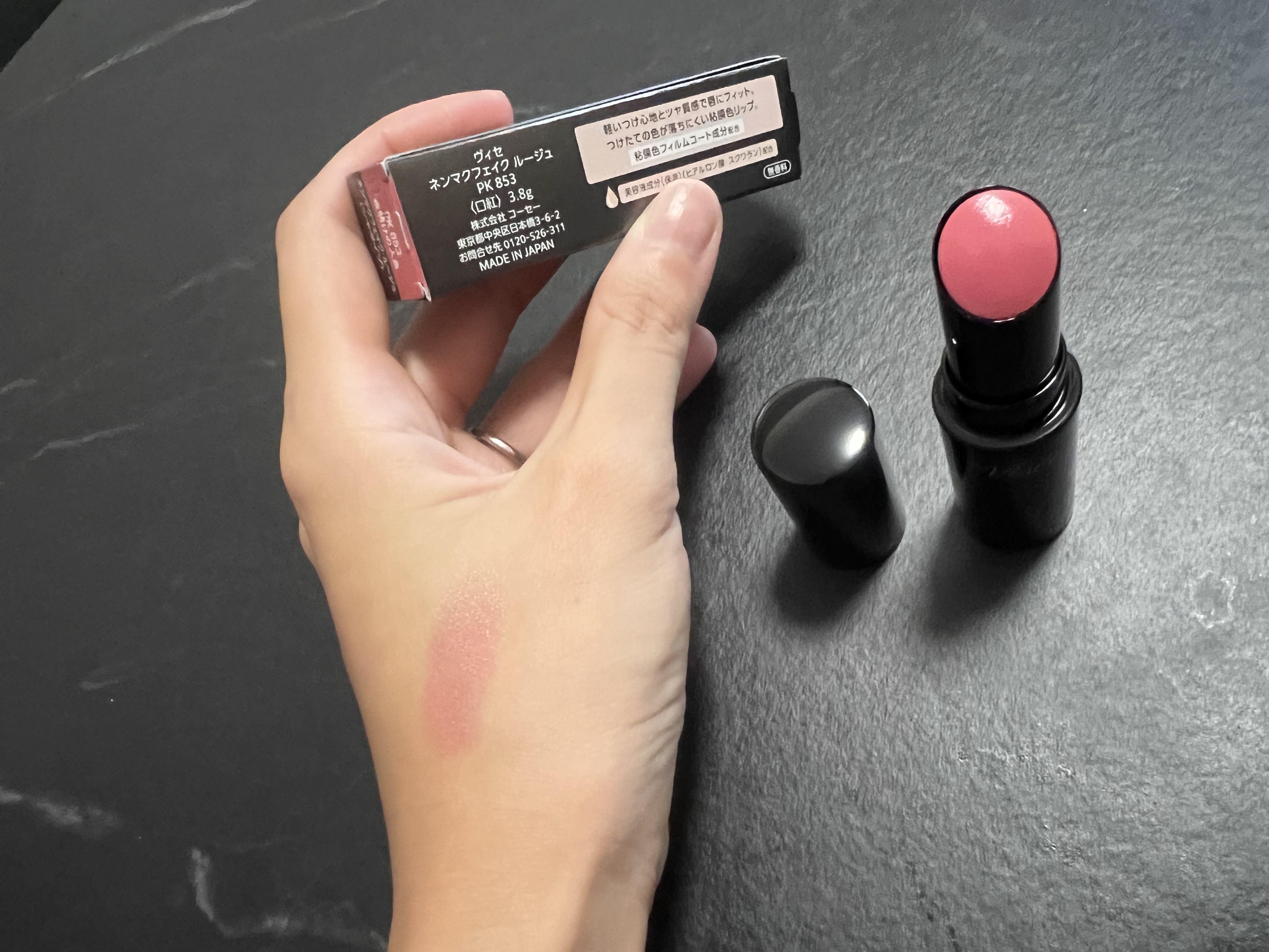 - ● 唇の内側の粘膜のような色・質感を再現した粘膜カラーが、唇の血色を自然に高めてむっちりとした色気のある印象的な唇へ導くスティックルージュです。 ● するすると軽い塗り心地でなめらかに唇へフィット。 みずみずしいツヤ感あふれる仕上がりです。 ● 塗布後、2層に分離するコーセー独自のラスティング処方を採用。 粘膜カラー層が唇にピタッと密着し、粘膜色フィルムコート成分が透明度の高いツヤの膜でコーティング。 美しい発色が8時間つづきます。 ※化粧もちデータ取得。(当社調べ。効果には個人差があります。) ● カップやマスクに触れても色移りしにくい、色持ちのよさ・落ちにくさを実現しました。 ● 粘膜カラーを再現した肌なじみのよいカラーラインアップ。 じんわりとした血色感と適度なツヤ感で、どんな方にもなじみやすいのが魅力です。 ● 無香料 ● 美容液成分〔ヒアルロン酸・スクワラン〕(保湿) ● 粘膜色フィルムコート成分(ツヤアップ & 色持ち成分) 粘膜色フィルムコート成分はトリメチルシロキシフェニルジメチコンです。