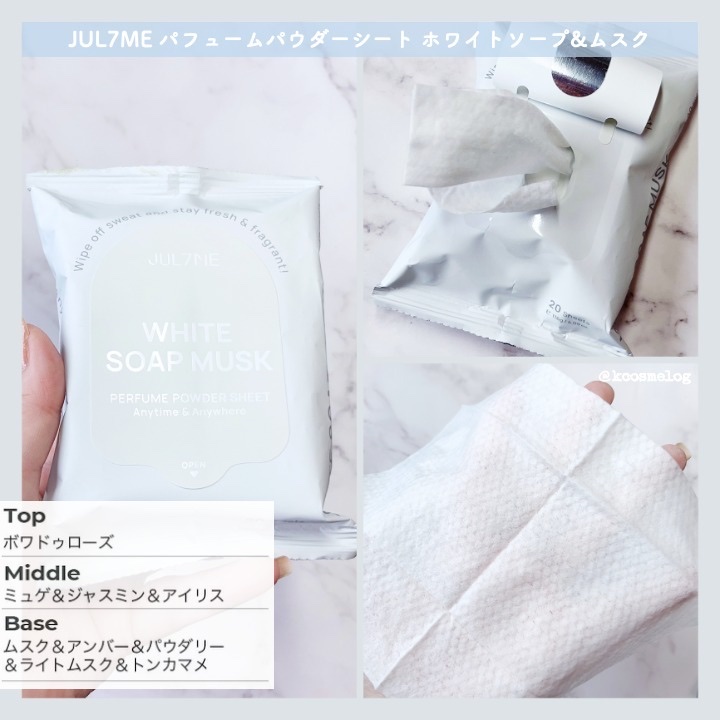 JUL7ME ジュライミー フレグランスパウダーシート ホワイトソープムスク | 638円 |