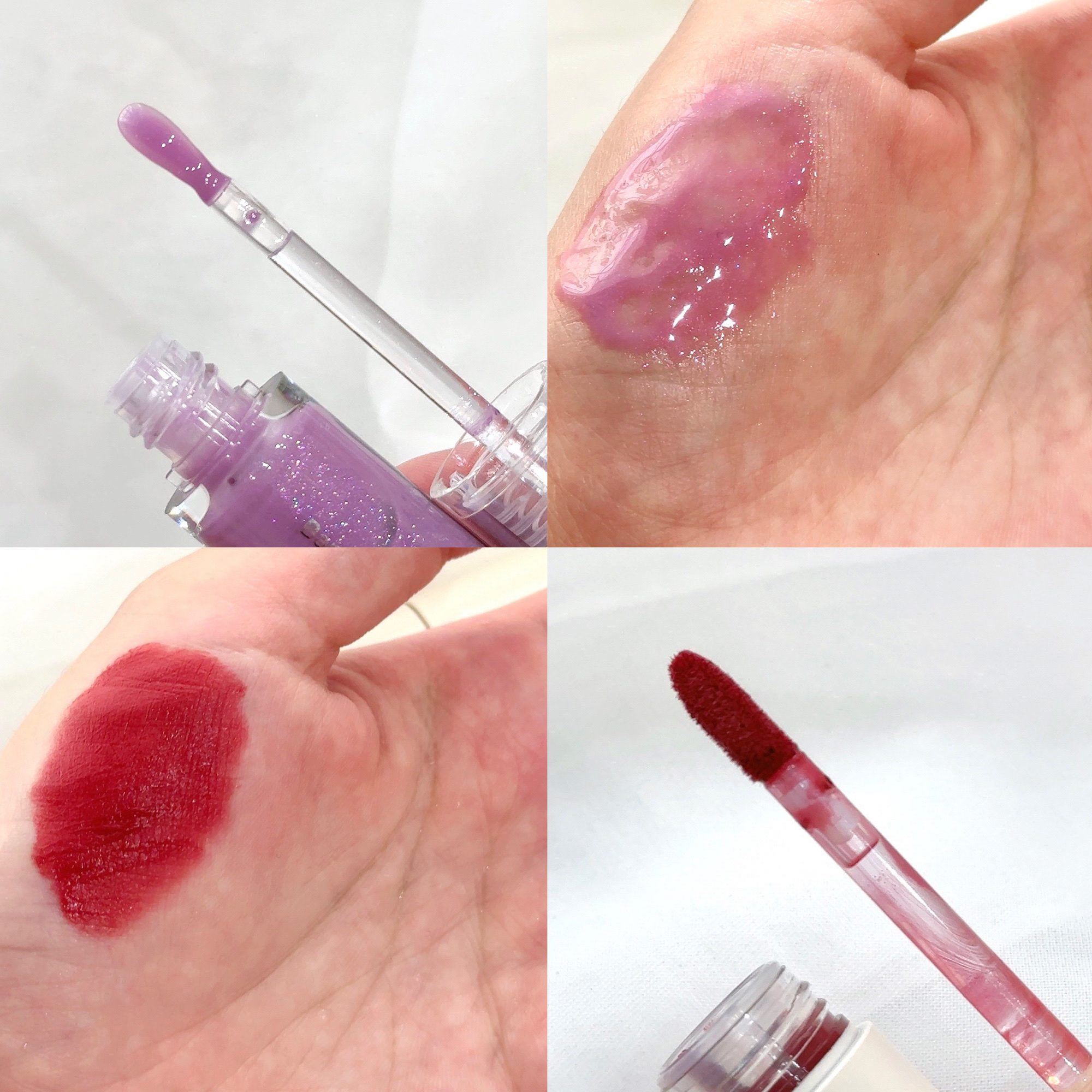 どちらも透明感のある発色で潤みのあるナチュラルな仕上がり🫶 塗ってみるとパール感はそこまでなくて派手になり過ぎない印象😌光に当たるとキラキラ光るから可愛い💄 レッドフレークは優しい赤色にシルバーパール入りのリップ コーラルスノーはヌーディなオレンジカラーにゴールドパール入りのリップ 動画で見るとパール感伝わりやすいかも✨️ꪔ̤̮