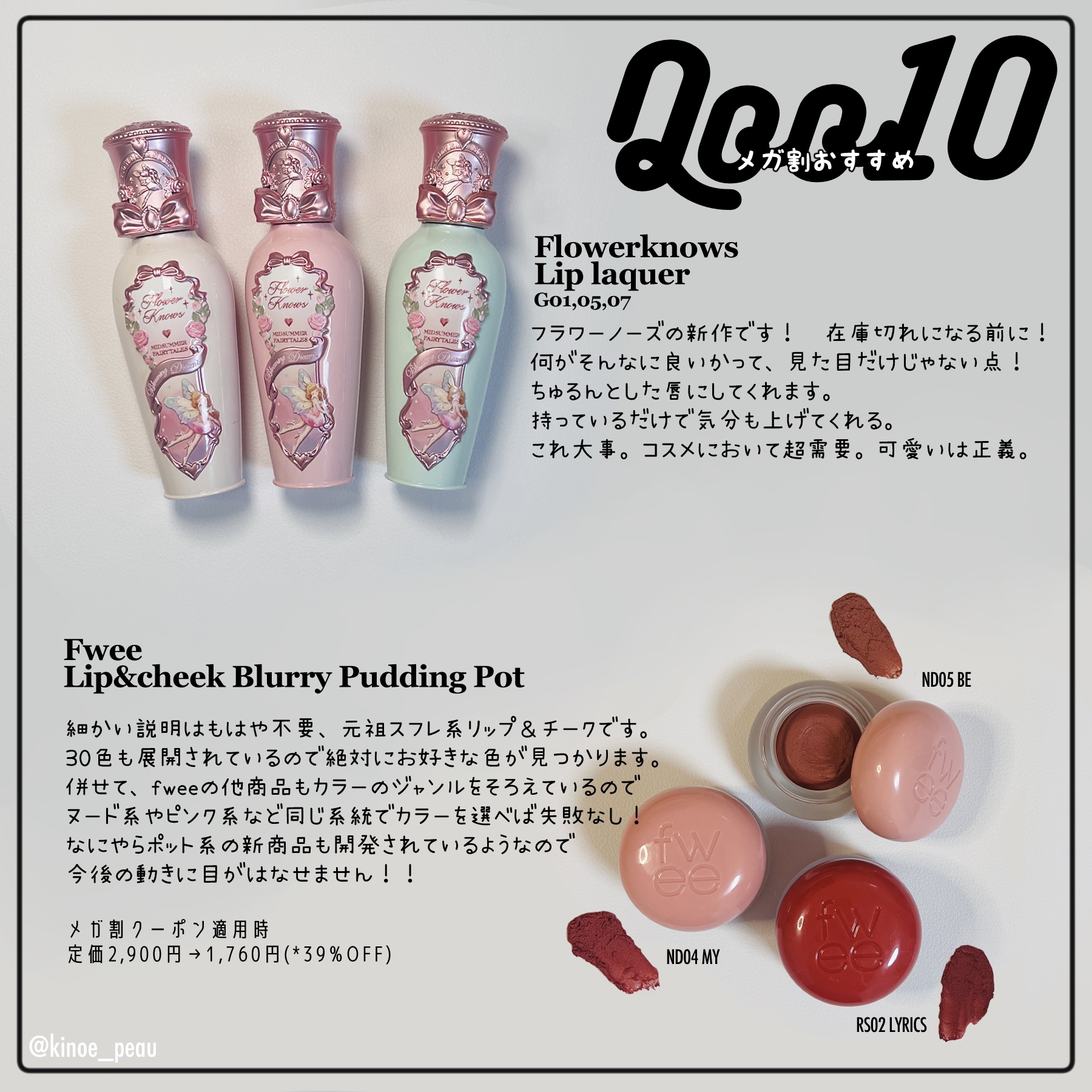 📝#Qoo10メガ割で追加購入しました♡🍮fweeリップアンドチークブラーリープリンポット●ND04マイ:ナチュラルな唇を演出。ベースとしても単独でも使いやすいヌードコーラル。○CR02ボーイ:イエベ春におすすめのコーラルピンク。●PK02...
