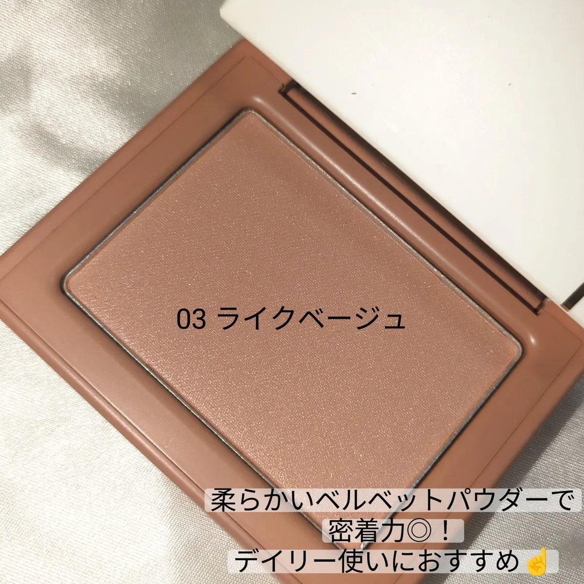 - 柔らかいベルベットパウダーがムラなく密着し、 くすみにくく明るい印象が続くブラーリングチークです。