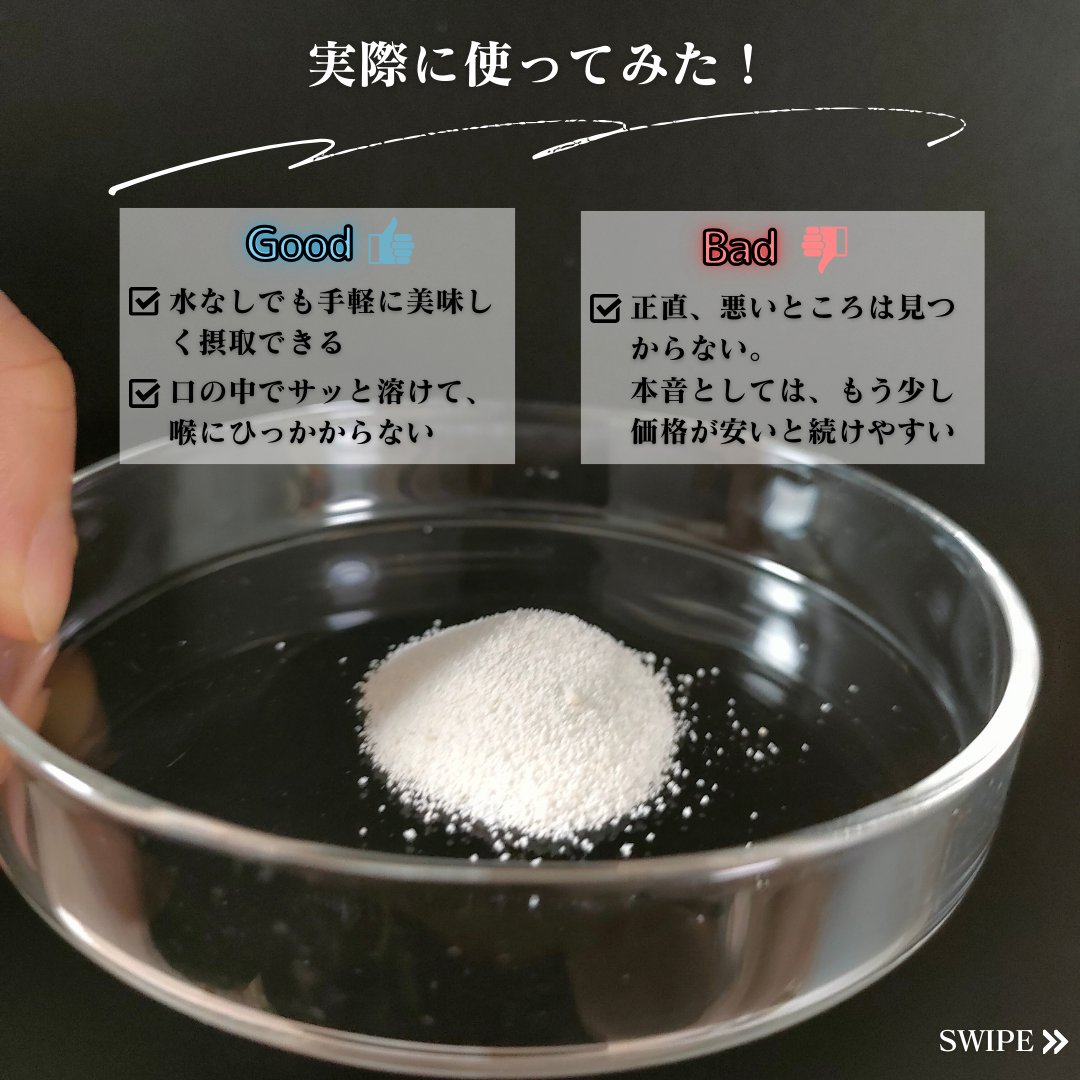 | サプリメント・フードランキング第9位 | 粒子が細かくサラサラで、水や炭酸水にスっと溶けます。酸味が効いていて、爽やかな味で美味しいです。 | 詳細を見る | |