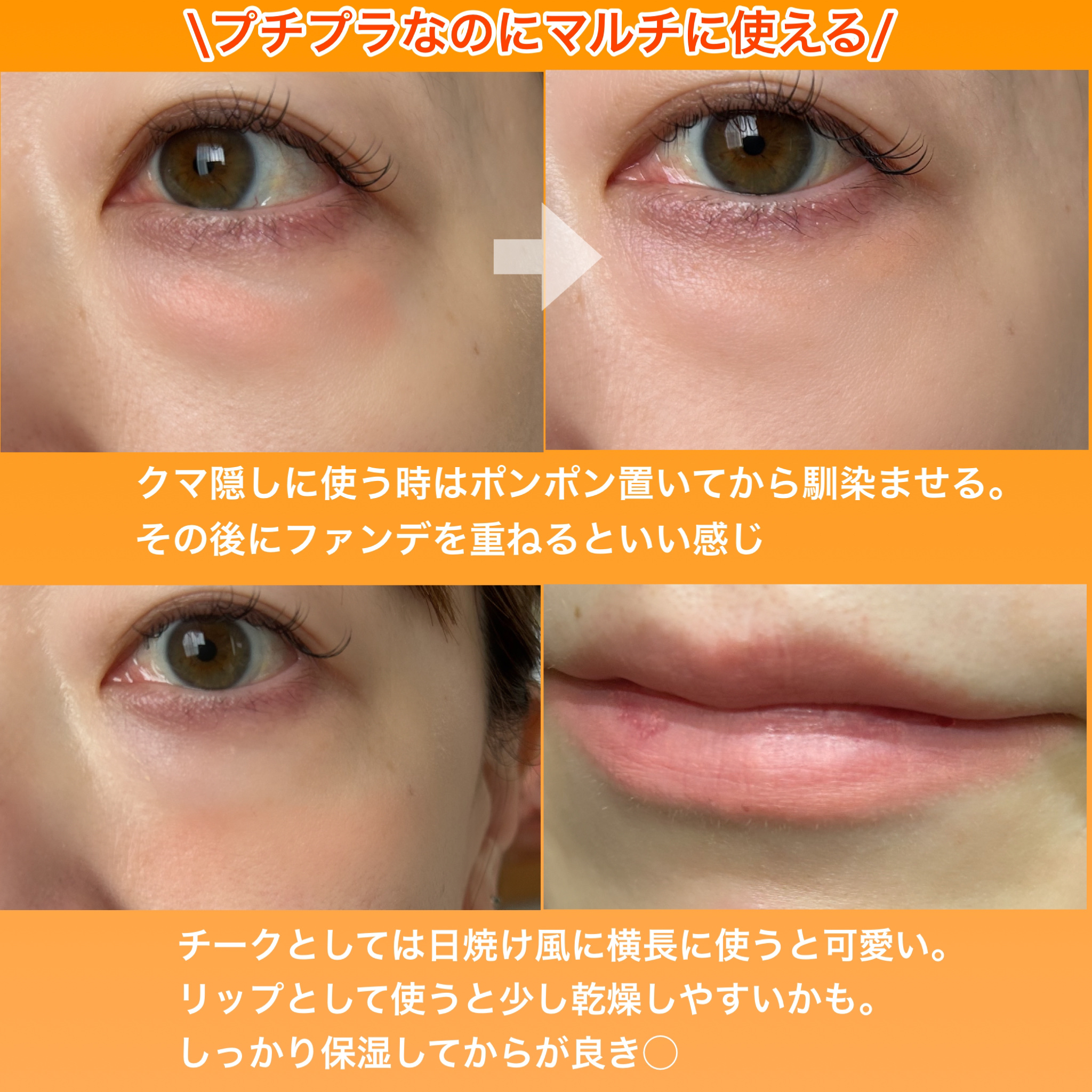 - オレンジを仕込んでクマ・青み・くすみを瞬時にカバー(※1) 目元の気になるクマや眉・髭の青みを瞬時にカバーするコンシーラー。 マットなオレンジカラーが、青クマ・青みを強力色補正。 高密着で厚塗りすることなく、自然に肌悩みを隠して血色感アップ! ●強力色調補正 濃いクマや髭の青みにも負けない! 対照色であるオレンジの補色効果で自然かつ強力にカバー ●ヨレない密着力 半練りタイプで肌にピタッと密着 上からファンデーションをのせてもよれずにナチュラルにカバー ●マルチに活躍 保湿成分配合でお肌に優しい使い心地でアイメイクが可能 チーク、リップにも使えてひとつでオレンジメイクが叶う ●注目の「CICA(※2)スキンバリア成分」配合 CICA(※2)スキンバリア成分を新たに配合し、メイクしながらしっかりお肌を守るスキンケア効果をプラス ●乾燥しがちな目元もしっかり保湿 潤いを与えてくれる美容成分配合(※3) ※1.メーキャップ効果による ※2.ツボクサエキス(保湿成分) ※3.ヒアルロン酸、加水分解コラーゲン(保湿成分)