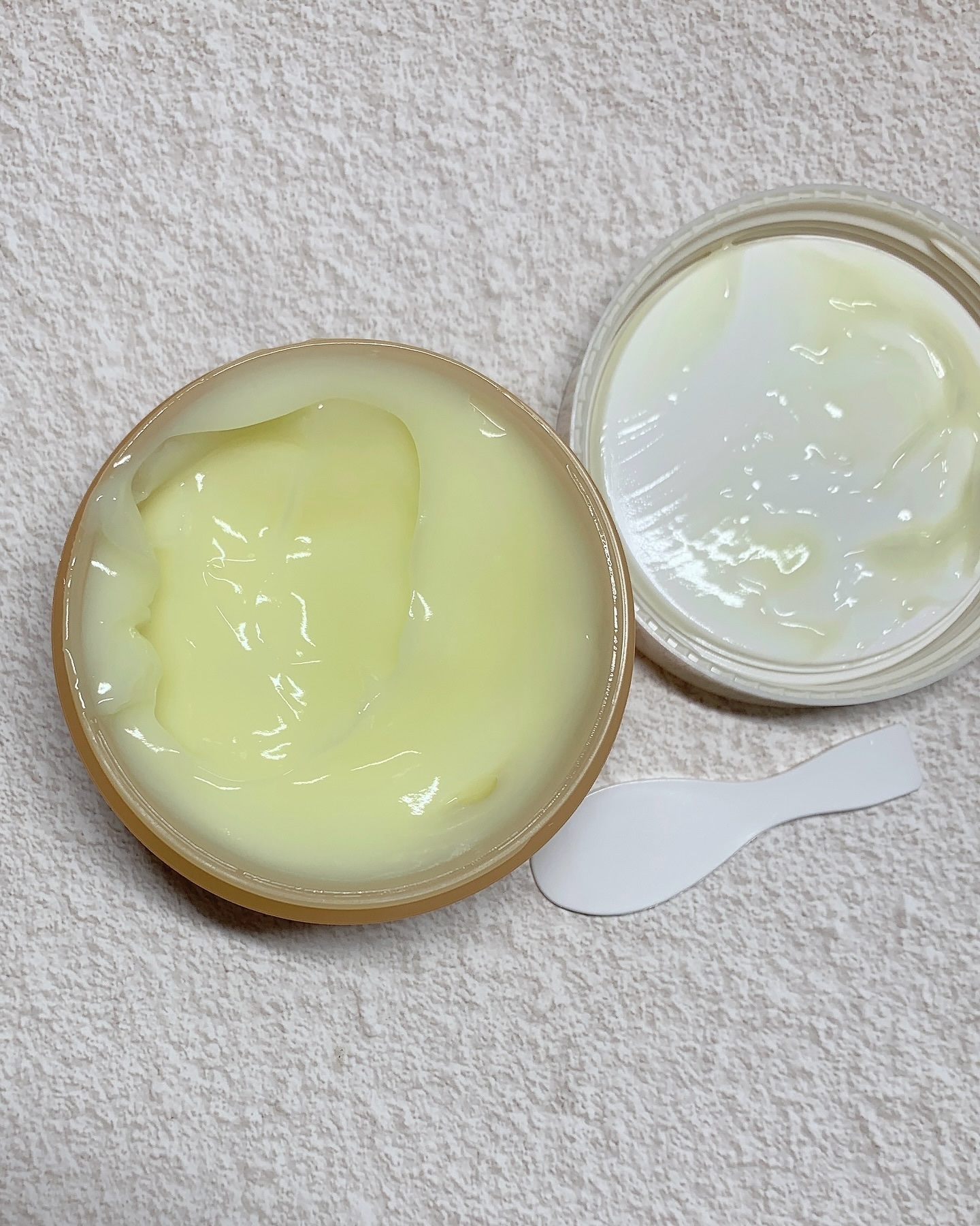 | 比較的こっくりとしたテクスチャーのクリーム。 手に取った時は少し硬めに感じるのに、伸ばすと瑞々しく伸びて、その違いにびっくりした! | 詳細を見る | |||