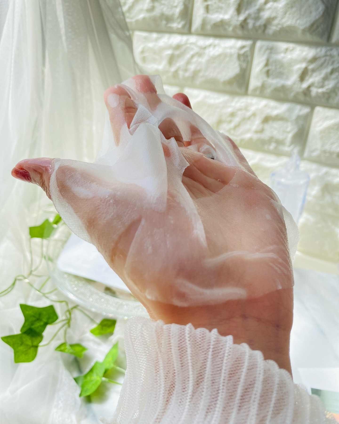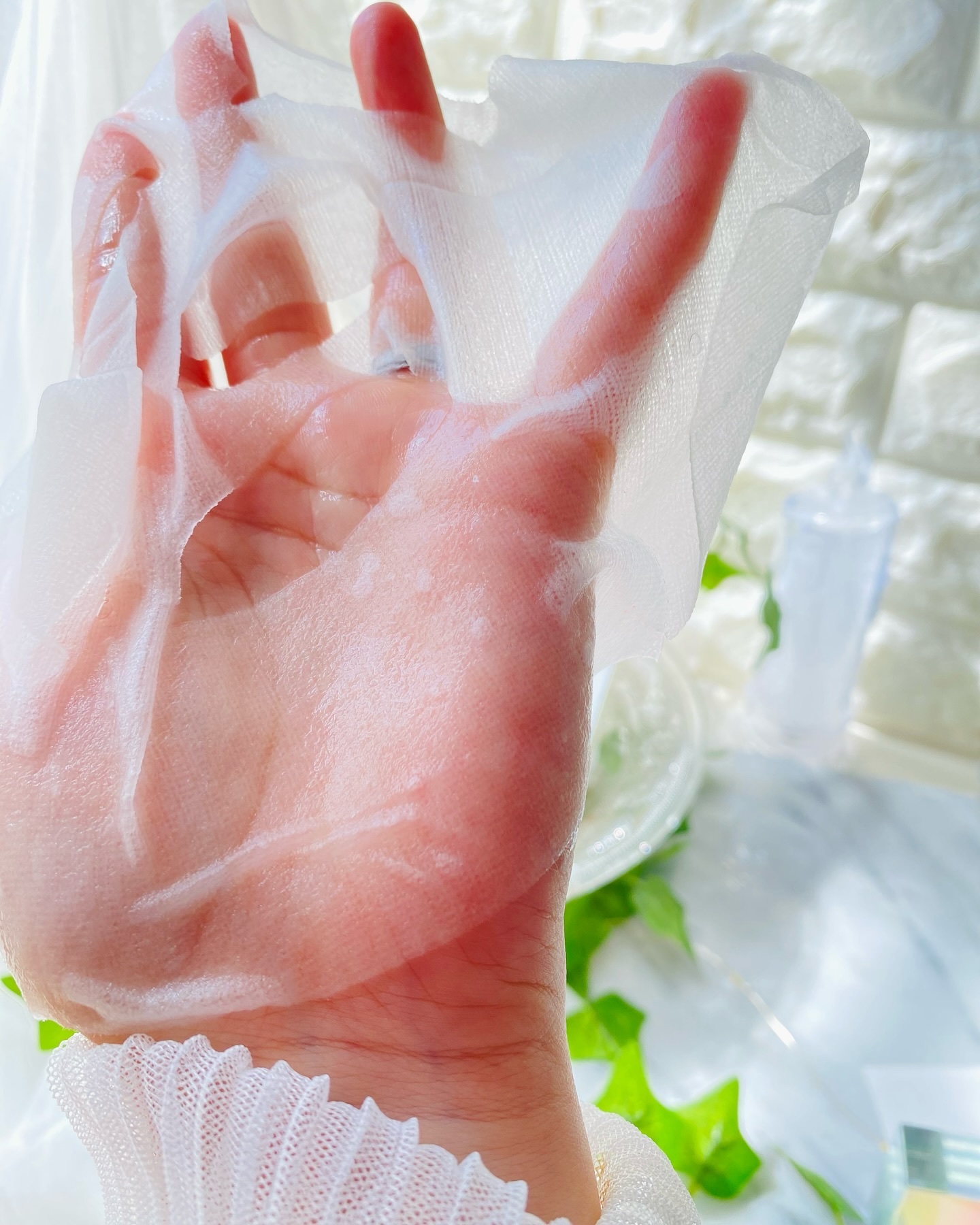 | 湯葉と布の間のようななめらかな素材のシートでとろとろの美容液がたっぷり染み込んでいてとっても気持ちいい。 | 詳細を見る | ||