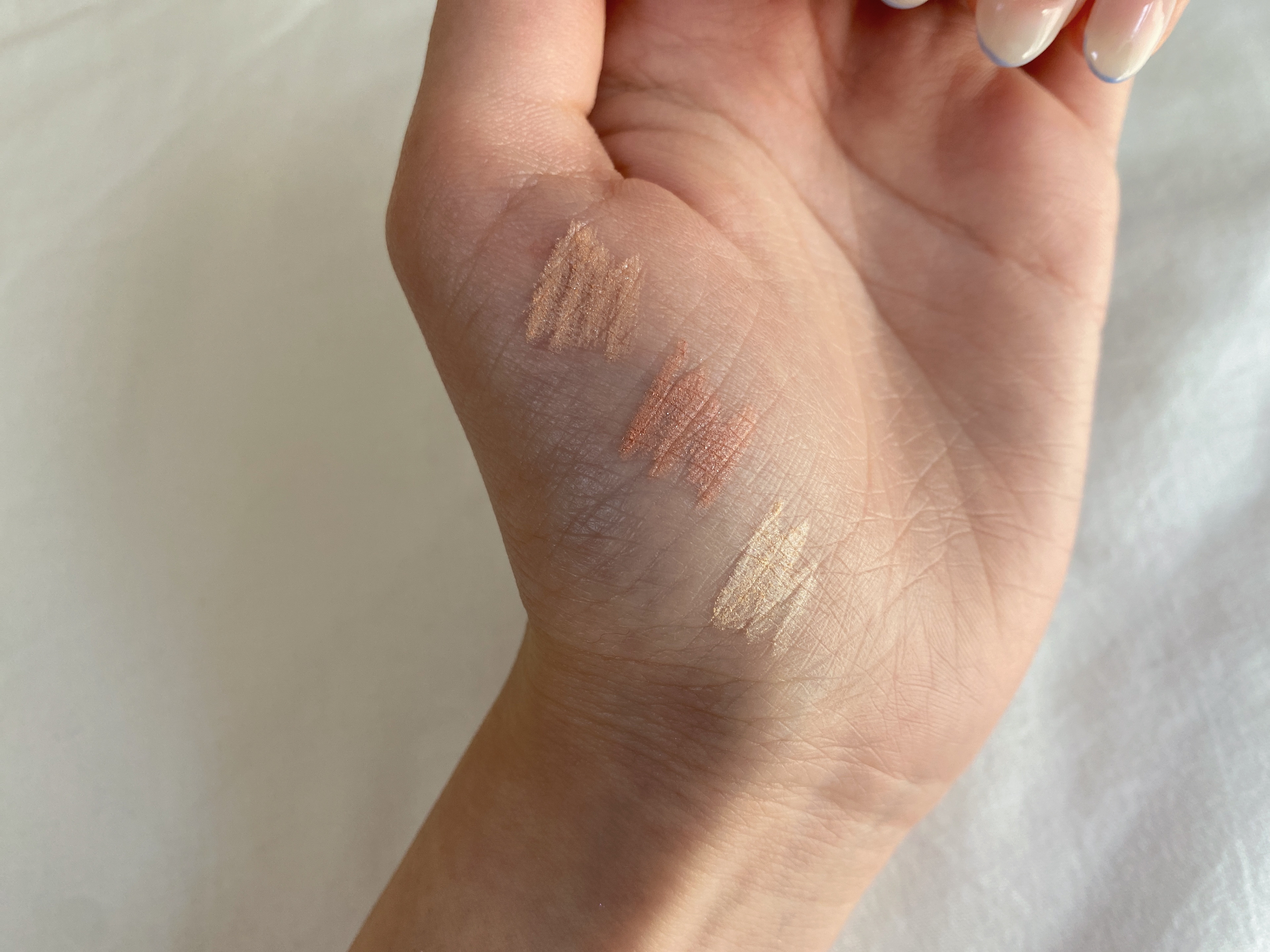 ペンシルタイプ時短にアイシャドウが終わるので適当にメイク済ませたい日や、急いでる時はこればかり使ってます。1軍ポーチ入れてます。 ピンク好きな方は是非!!!アイシャドウがもろいのでガチッと固まらず、適当に塗っても指でぼかしやすいです 明るい薄ピンクに、細かいゴールド。シマータイプのアイシャドウです。
