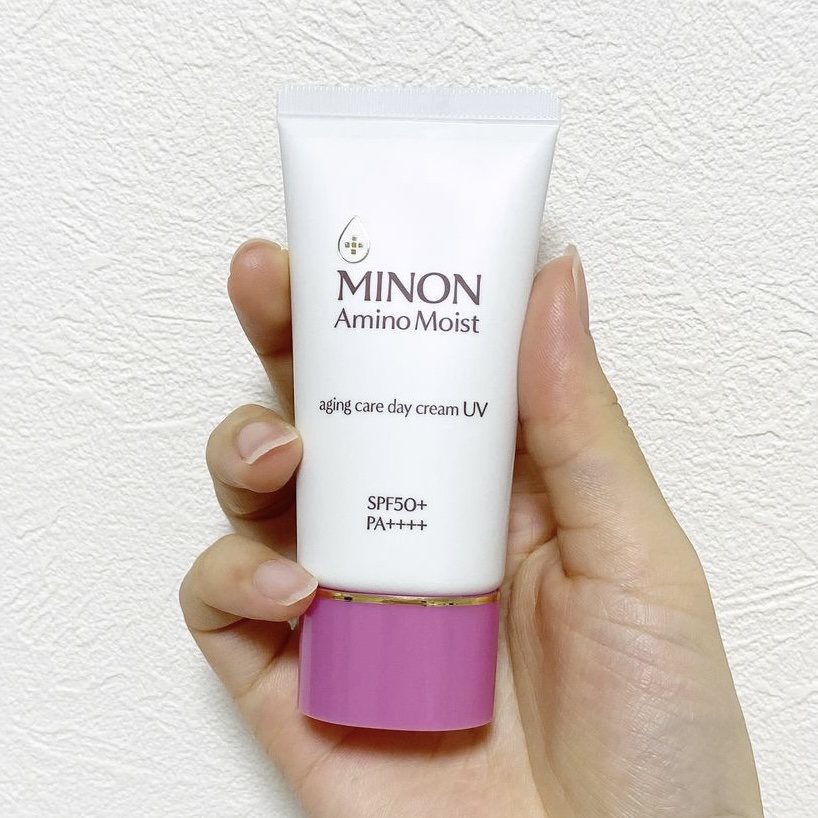 - 【シワ改善もできるUVクリーム】 SPF50+PA++++ シワ改善×UVカットが出来る薬用シワ改善UVクリーム。これ1本で美容クリーム・UVカット・化粧下地の3役。 シワ改善&しみ*予防成分「ナイアシンアミド」、肌あれ予防成分「グリチルリチン酸2K」配合。紫外線吸収剤&酸化亜鉛フリーで敏感肌を考えた処方。自然な輝きを放つ、やわらかなテクスチャーの化粧下地、見る角度で反射色が変わる「艶肌ダブルカラーパウダー」配合で自然な立体感を演出。 エイジングケア:年齢に応じたお手入れケア *メラニンの生成を抑え、しみ・そばかすを防ぐ (販売名:ミノンアミノモイストAU)【医薬部外品】
