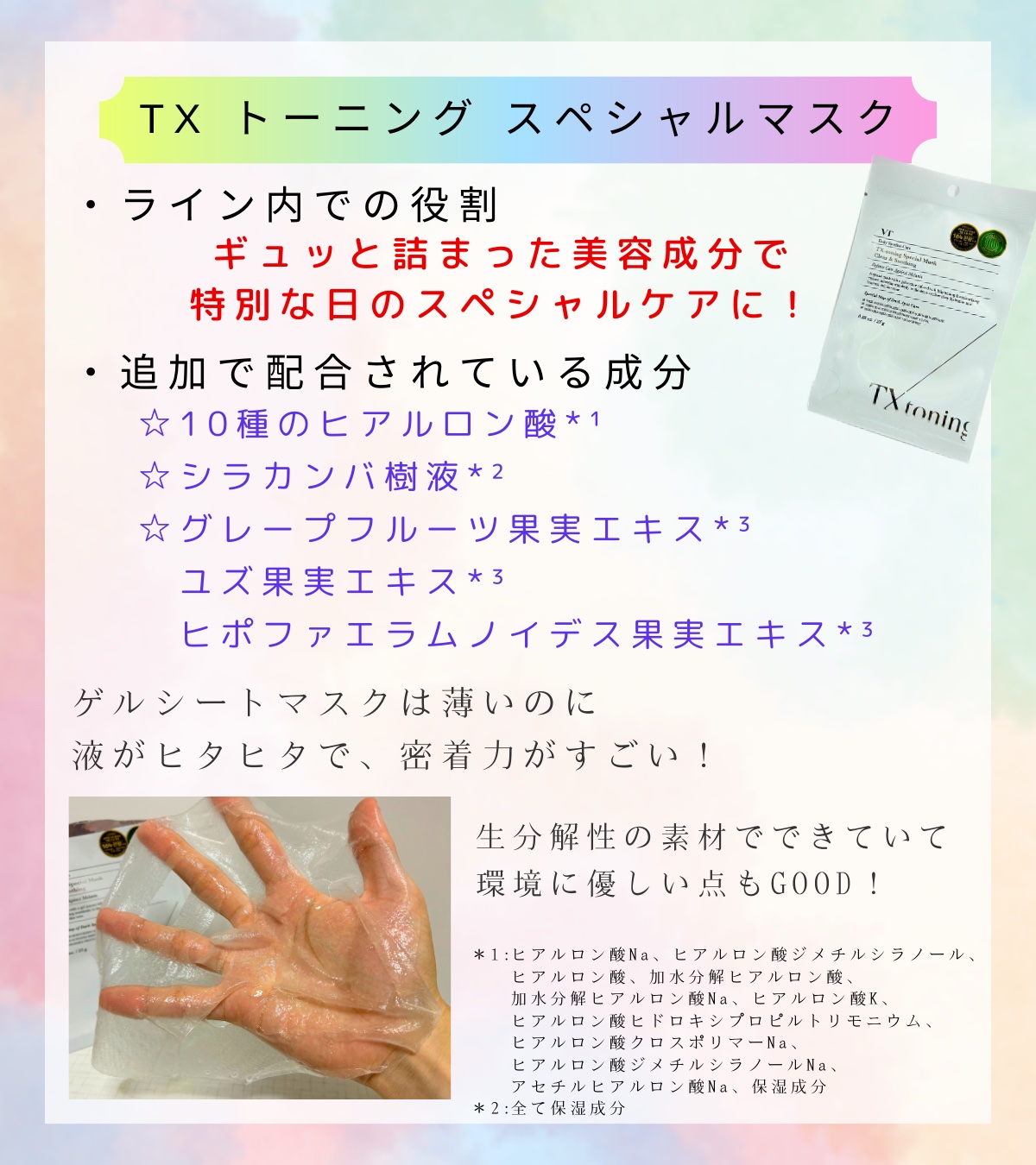 発売4ヶ月で40万個を売り上げたTXトーニング。トラネキサム酸などが配合されていて、自宅で簡単にくすみケア(乾燥による)ができちゃうよ✌️ 私の推しは、 #TXトーニングマスク デイリータイプとスペシャルタイプがあって、どちらも甲乙付け難いくらい良い🥺💓 メガ割の期間なら割引に加え、おまけアイテムもあるみたいなのでチェックしてみてね🫶