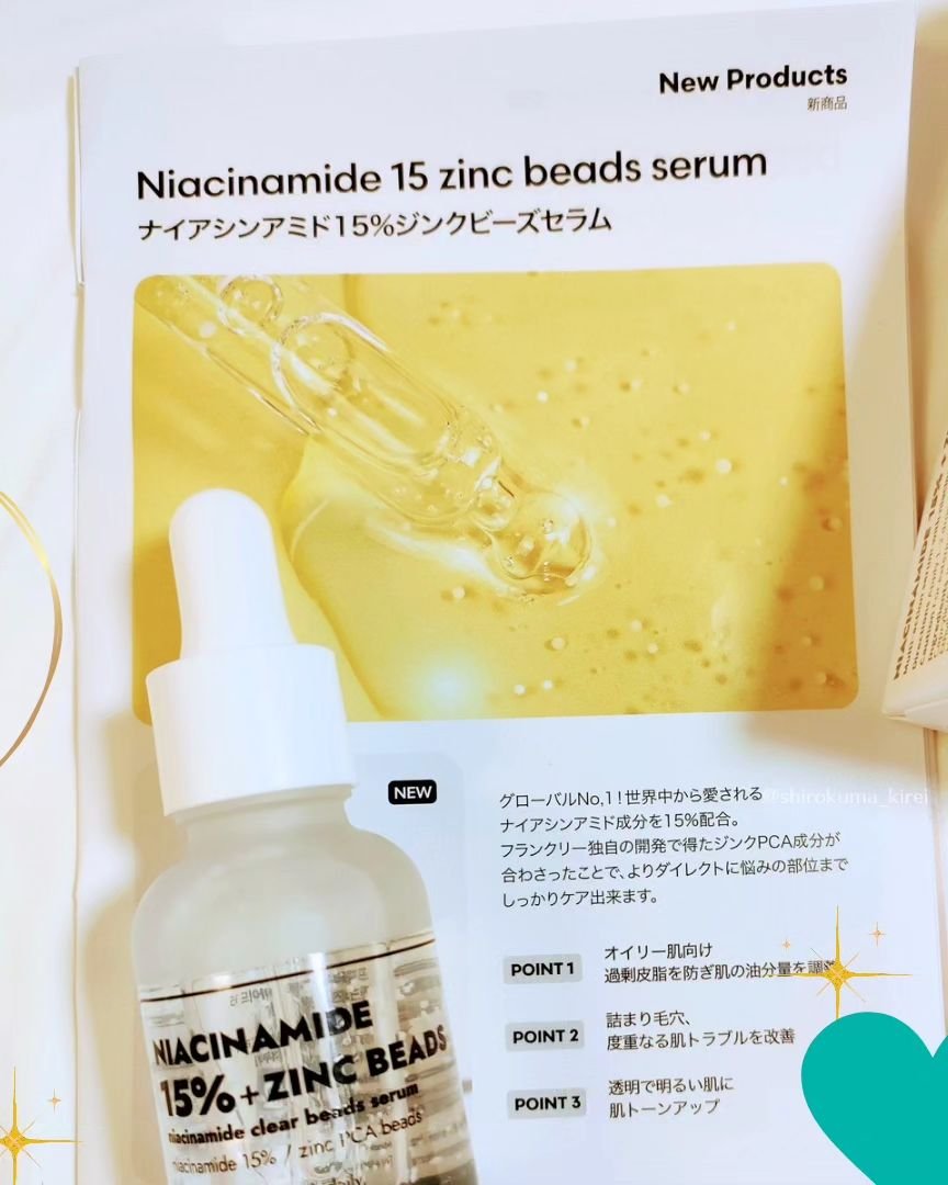 ▶︎FRANKLYナイアシンジンクビーズセラム✂FRANKLY様から「ナイアシンジンクビーズセラム」をいただきました🎀ナイアシンアミド×亜鉛っていう組み合わせ、正直どうなんだろうって思ってたけど…毛穴が目立たなくなって肌のキメが整って綺麗に見...
