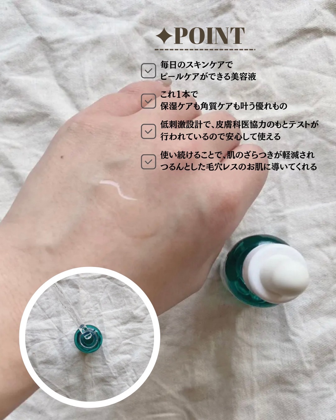 毎日の角質ケア&UVケアでざら肌からつる肌、毛穴レス印象肌*へ👏🏻✨ ✔︎︎︎︎自宅でできるピールケア 日々の肌を角質ケア×保湿ケアでサポート ✔︎︎︎︎SPF50+ PA++++ 独自のうるさら膜が、テカリをおさえてくれます。