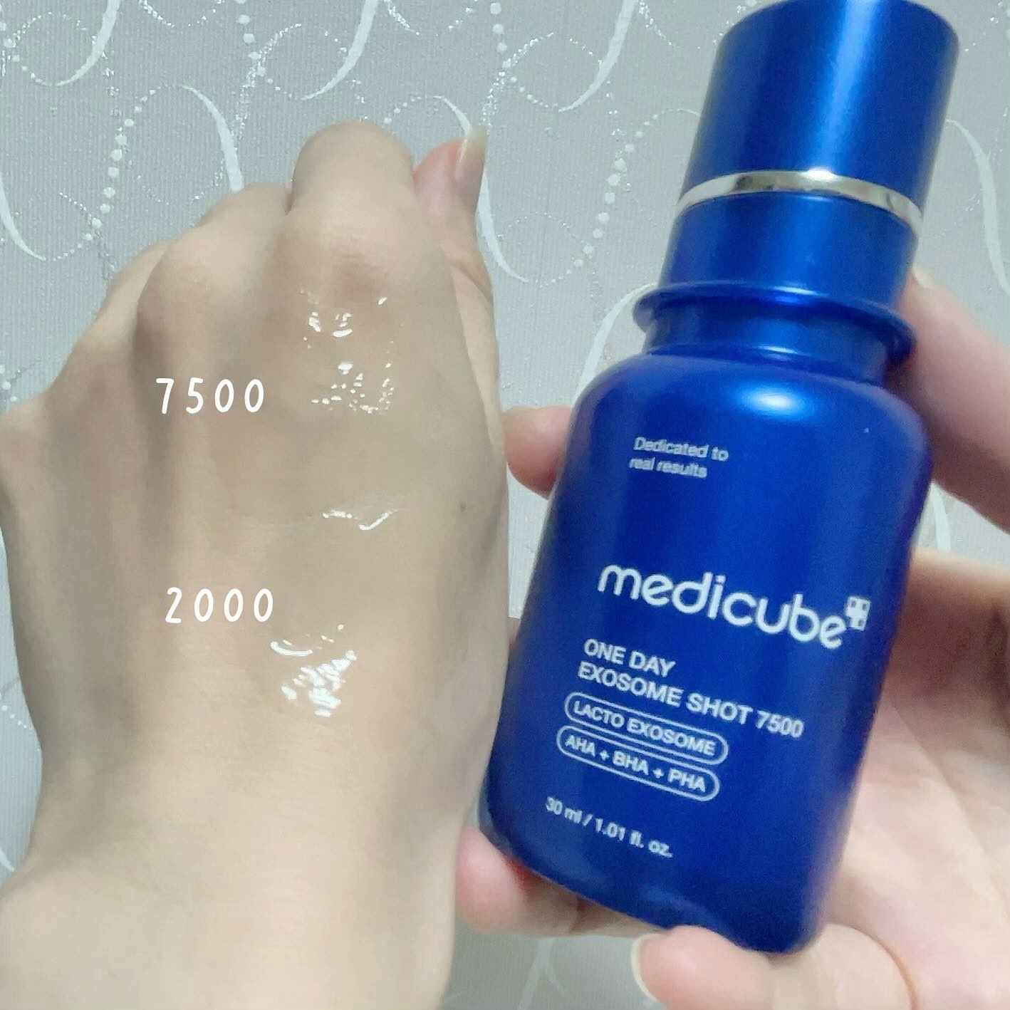 2000と7500、どちらもジェルのようなみずみずしいテクスチャー。 数字の大きさに恐る恐る使ってみたのですが、意外とチクチク感は強くないと思いました。 毛穴よりも13倍小さい16μmというサイズで、エステ専門ケア並みの効果が得られるそう。 水分クリームと一緒に使っているのですが、肌がもちっとして相性がいいみたいです。