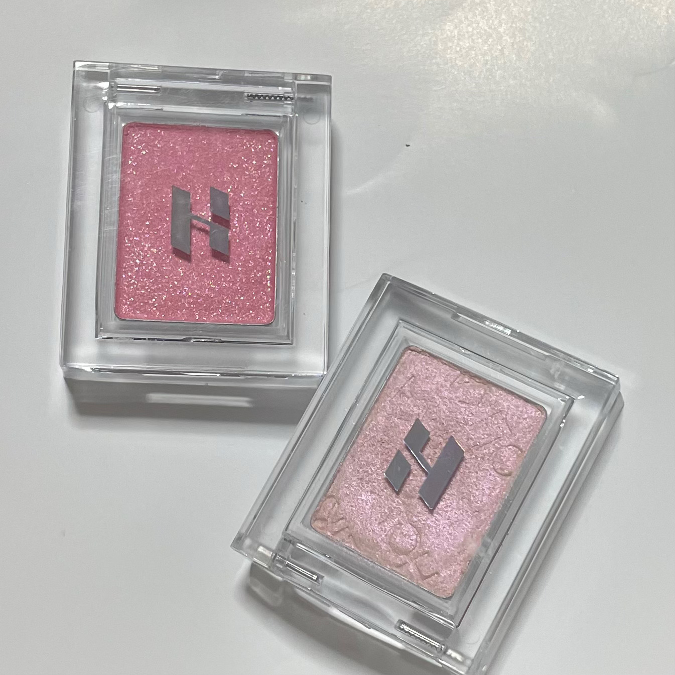 ホリカホリカの単色アイシャドウ。買い足して19色になりました🌼 メガ割だとかなりお得に買えるので、ついつい集めたくなります💕 02PINKID マット。ほんのりピンクのベージュ系。ベースにぴったり。ベースカラー探している方に推したいカラー💕 38 PINK ATTENTION 繊細なラメ。偏光パールのように輝くピンクトーンのハイライト。かなりキラキラするので、つけすぎ注意⚠️ちょんとつけるのが可愛い😍