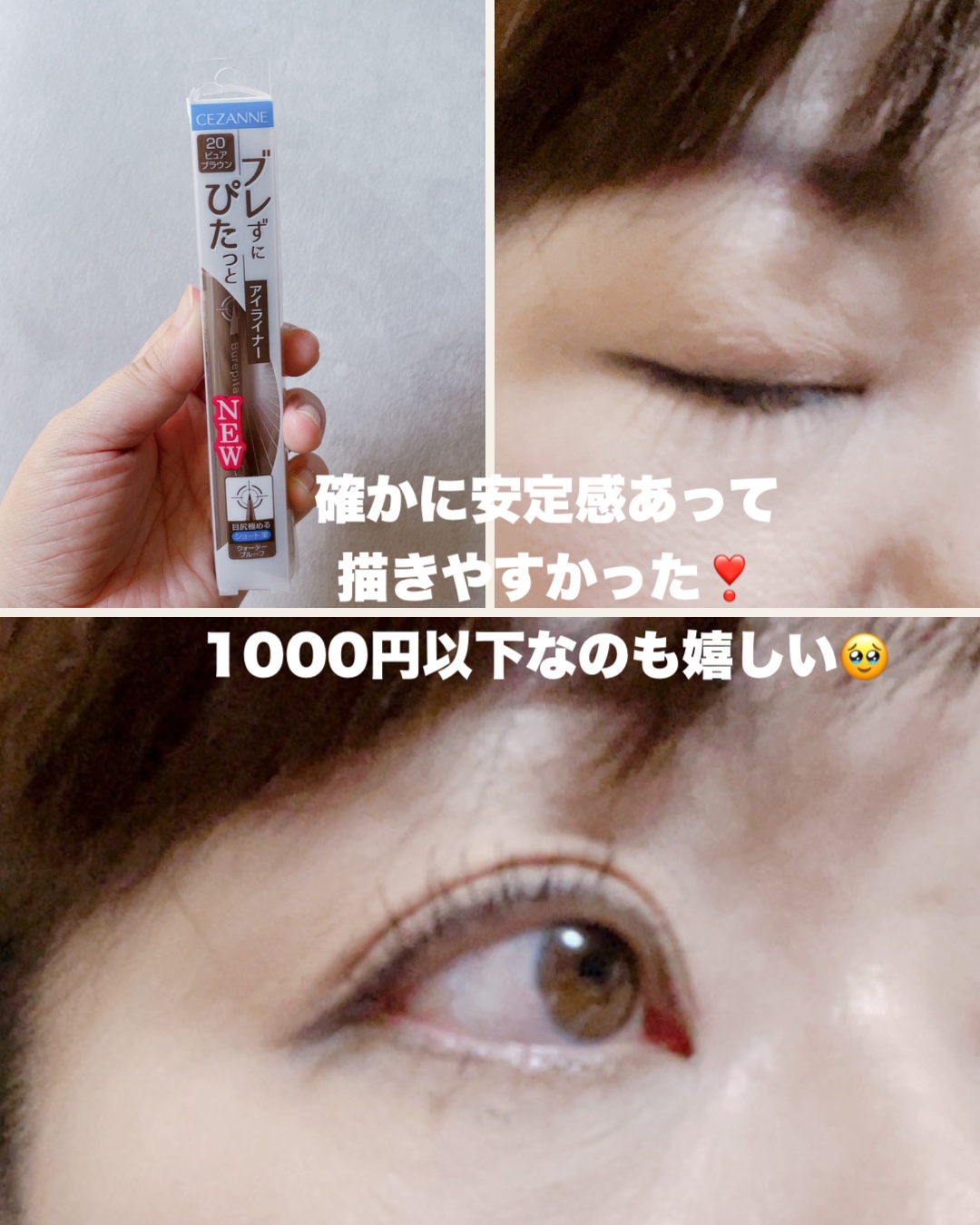 \アイライナー苦手さん集合🙋♀️╱セザンヌブレぴたライナーで描く簡単アイライン講座!👀こんなアイラインのお悩みはありせんか?✅ラインがガタつく💦✅ラインが太くなる💦✅目のキワに描けない💦ブレぴたライナーは5㎜のショート筆だからラインがブレに...