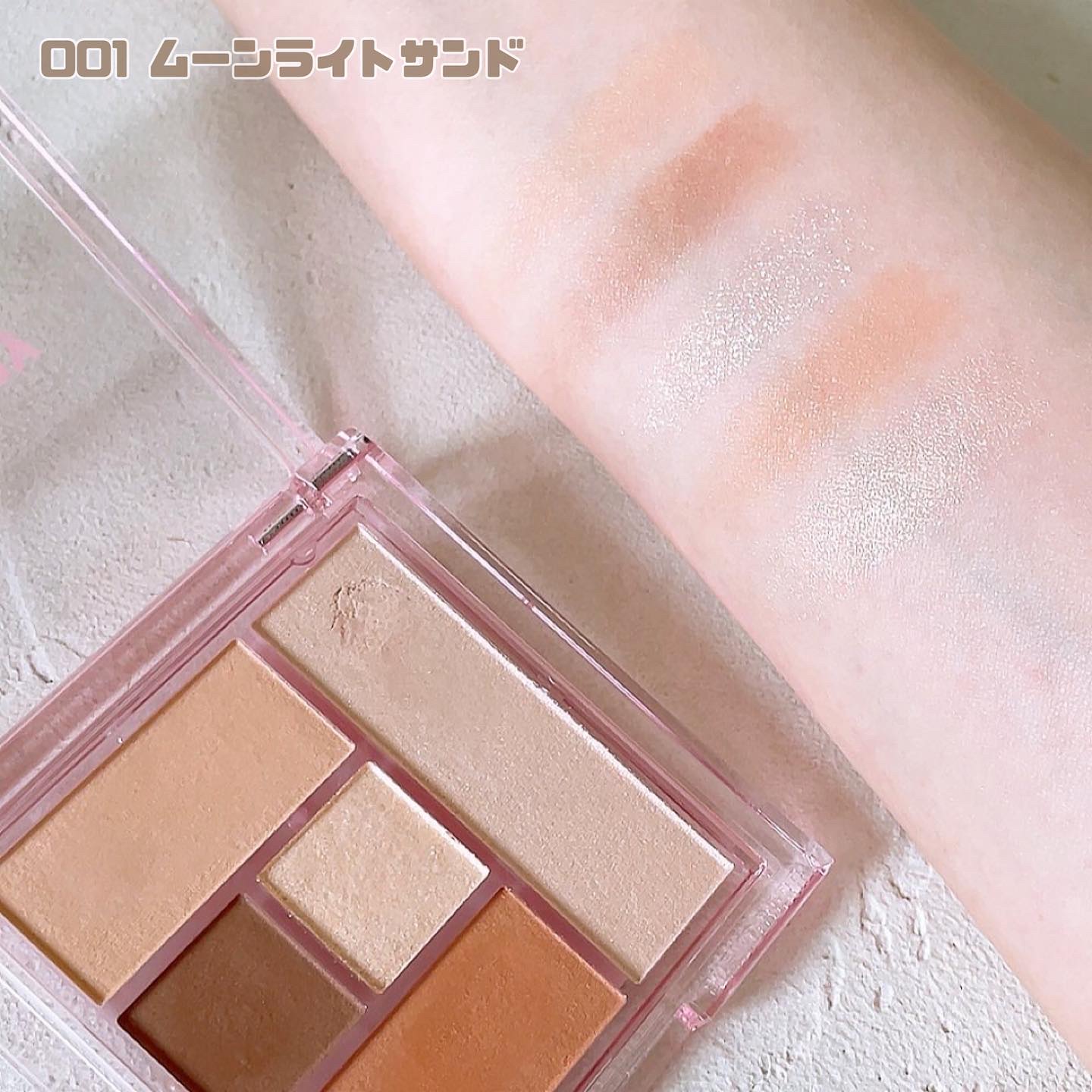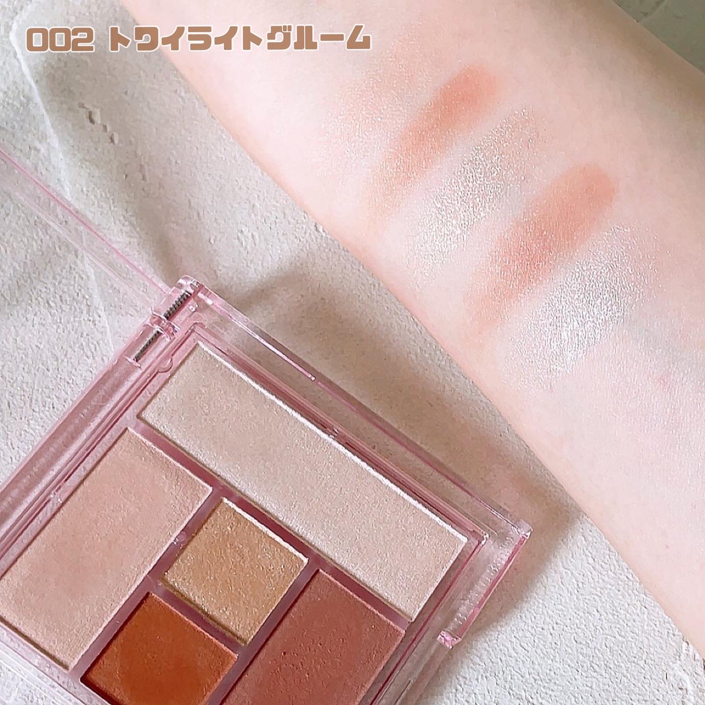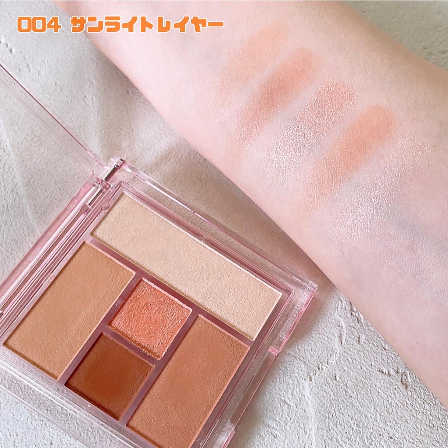 - ●陰影×立体感×透明感×ツヤ×血色感がワンパレットで叶う多機能パレット。 ●柔らかな自然な陰影で印象的な目もとに。 1.陰影×立体感×透明感×ツヤ×血色感を1つで叶える多機能パレット 柔らかな陰影をつくるシースルーマットのベースカラー・タイトンカラー・アクセントカラーに、涙袋のコンシーラー・ハイライター・アイベースにもマルチに使えるうるつやハイライト、上品な輝きを演出するグリッターと、ワンパレットで美しい陰影が叶うパレットです。 マットだけで仕上げる清楚系から、グリッターをプラスした華やかなメイク、ハイライトをつかった艶っぽいメイクまでワンパレットでメイクの幅が広がります。 指先で自然な仕上がりをつくることができます。 2.なめらかな仕上がりとマットの穏やかな暖色カラー