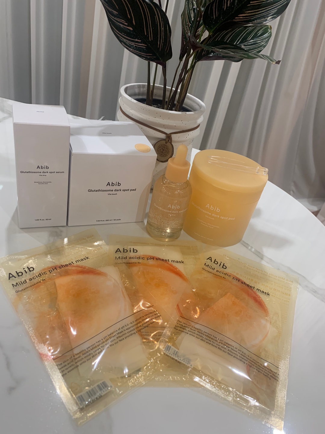 ナイアシンアミド、PlusSome® Vita C、Glutathiosomeの3つの成分でシミやくすみ改善! 塗ると肌の上で弾けるグルタチオンカプセル! ひたひたの美容液と大きめのパッドがうれしい😄 柔らかめで厚いパッドがピタッとくっつき部分ケアにとてもいいなと思いました! Abibの美白ラインは 夏の紫外線が気になる方、くすみシミを改善したい方に特におすすめです👍👍