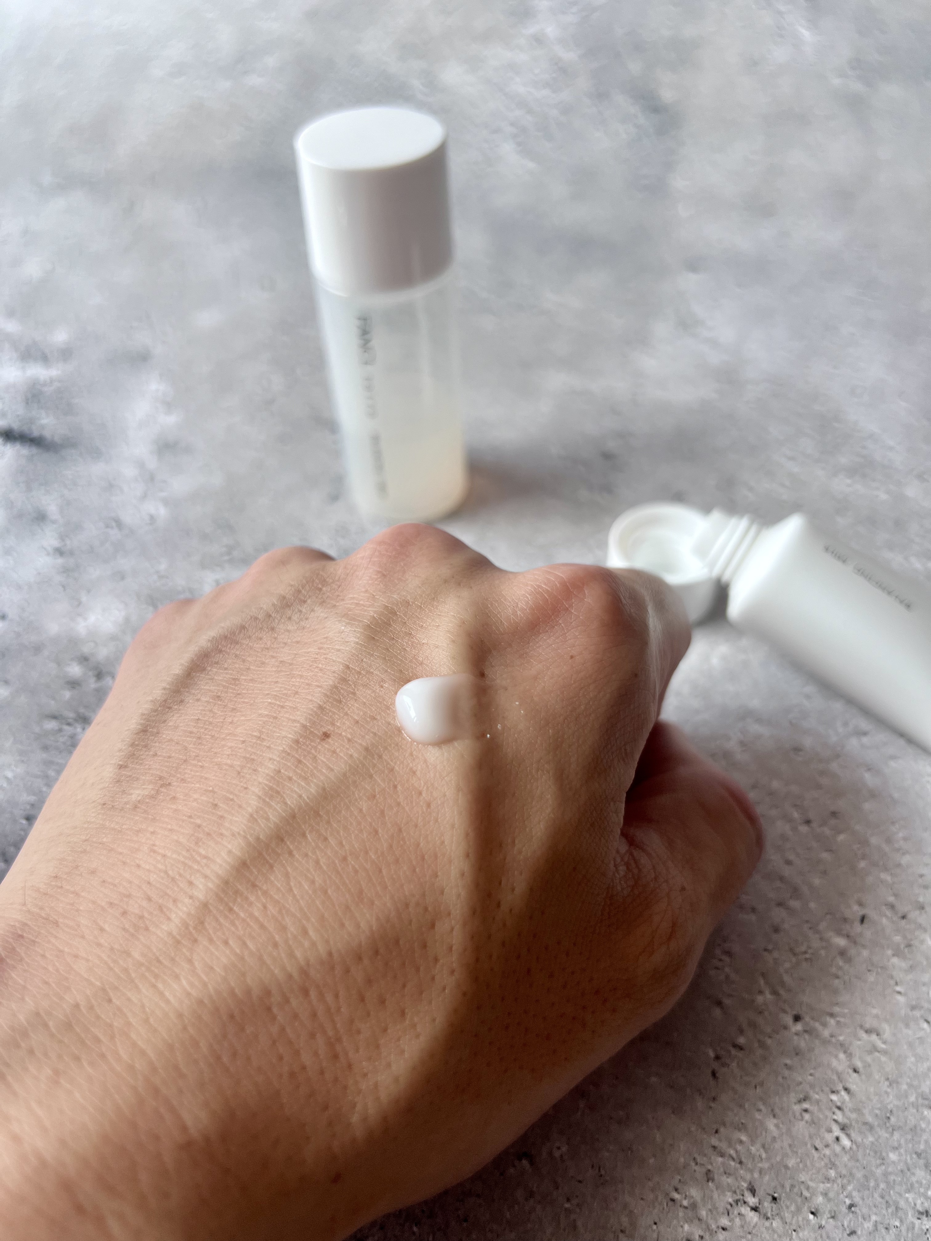 化粧液はややとろみがあるさらさらなタイプで 伸ばしやすく使いやすい。 乳液はお肌に乗せてのばすと みずみずしくしっとりと潤います🤍 ベタつきも気にならなかったです🙌 花粉などで肌が荒れがちな時でも 安心して使えるアイテム🥺