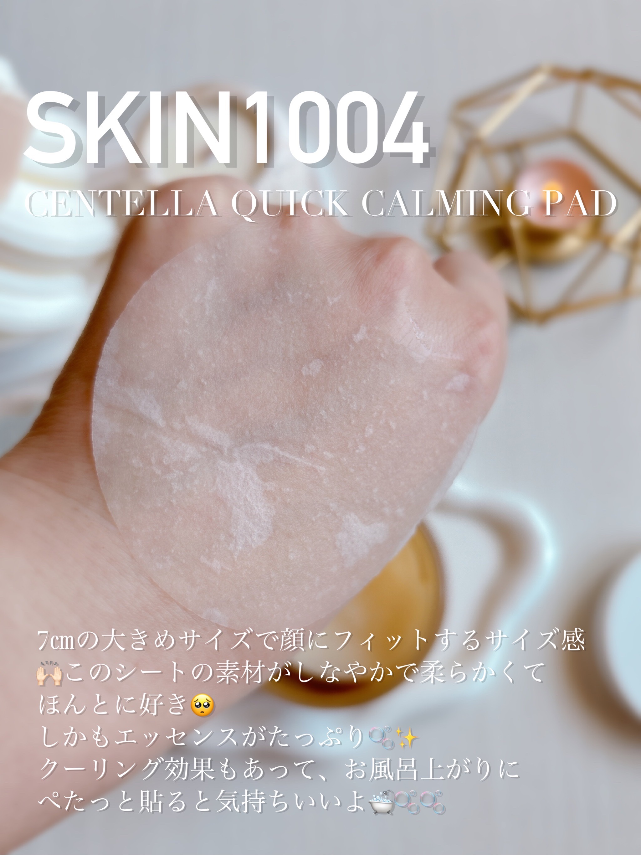 時間がない朝にも1分で水分チャージできる"じゅわぴたパッド"SKIN1004の「センテラクイックカーミングパッド」だよ刺激を受けたお肌にもやさしくケアできるSKIN1004のスキンケアが大好きで、このカーミングパッドもそのひとつ。パッドはお肌...