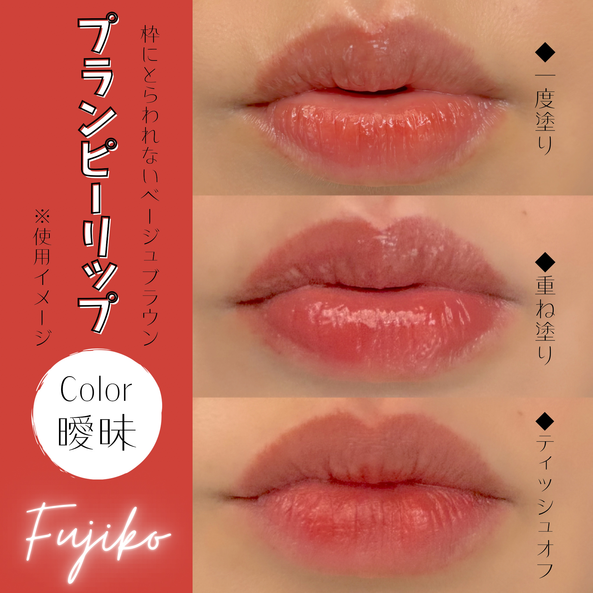 - フジコの新リップは、重ねるほどにパーンと膨んでみえるプランプティント*1。 ぷっくりと存在感のあるリップメイクで唇を主役に。 <プランプ成分(清涼成分)> "メントキシプロパンジオール”採用。 血色感、ボリューム感、クーリング感を演出します。 <オイルウォーターティント処方> 軽やかなオイルが唇に均一に伸び広がり、 FIXING。 時間が経ってもボリューム感と光沢感を演出。 しかもティントだから“落ちにくい”(*2)。 <5種の美容保湿成分配合> アルガンオイル・ツバキ種子油・アーモンド油 ティーツリー葉油・ハチミツエキス *1全てメイクアップ効果 *2効果・効能には個人差があります。