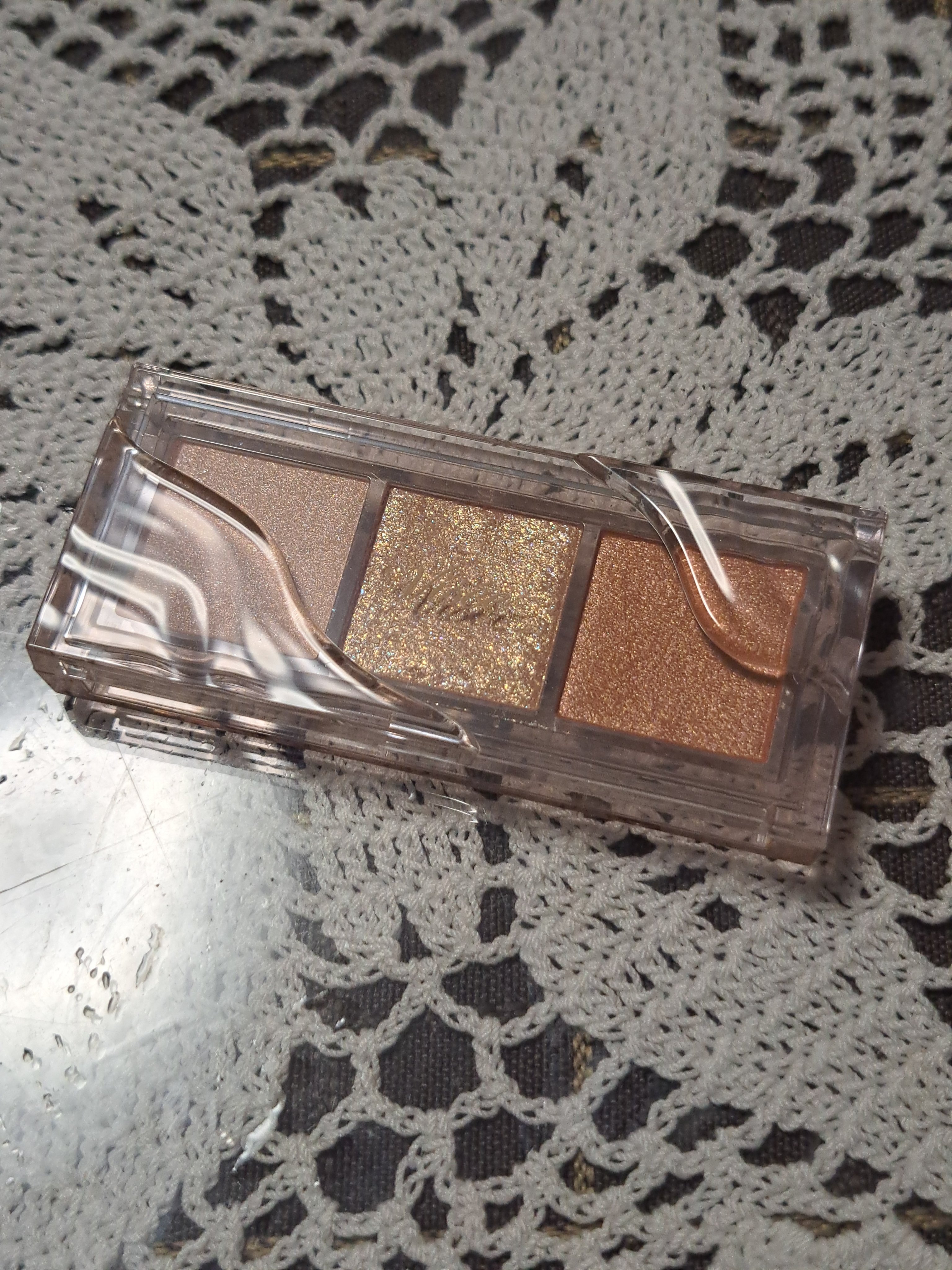 高輝度偏光パール×大粒グリッターを贅沢に配合した3色セットのアイカラー。角度によって色と輝きが変化する偏光パールが目元に魅力的な輝きを与えます! グリッターカラーがすごく可愛くてまぶた全体に塗ってもギラギラし過ぎない💫 パッケージはコンパクトでスリムなデザインでふた部分も水面のような立体感があり美しい💗