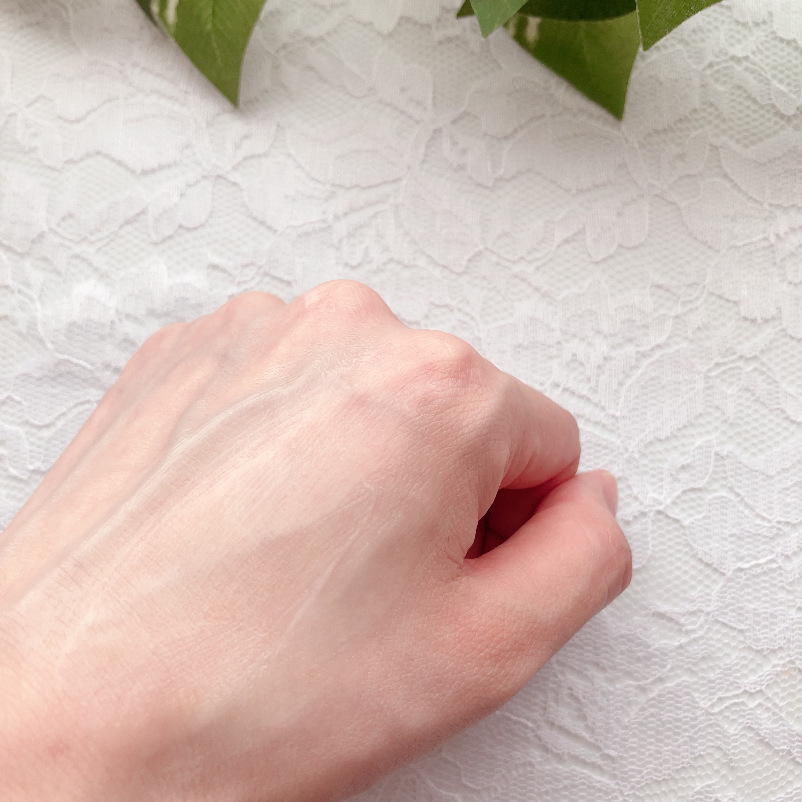 さらさらで伸びが良いテクスチャー。 肌への密着感もあって、ピンクベージュの色みが毛穴のカバーとほんんのりトーンアップも。 クリームのようなテクスチャー。 肌にのせすぎると白っぽくなるので、少しずつ伸ばすのが◎ なめらかテクスチャー。 細かいパールが入ってますが、ギラギラしたりもなく自然な感じ。