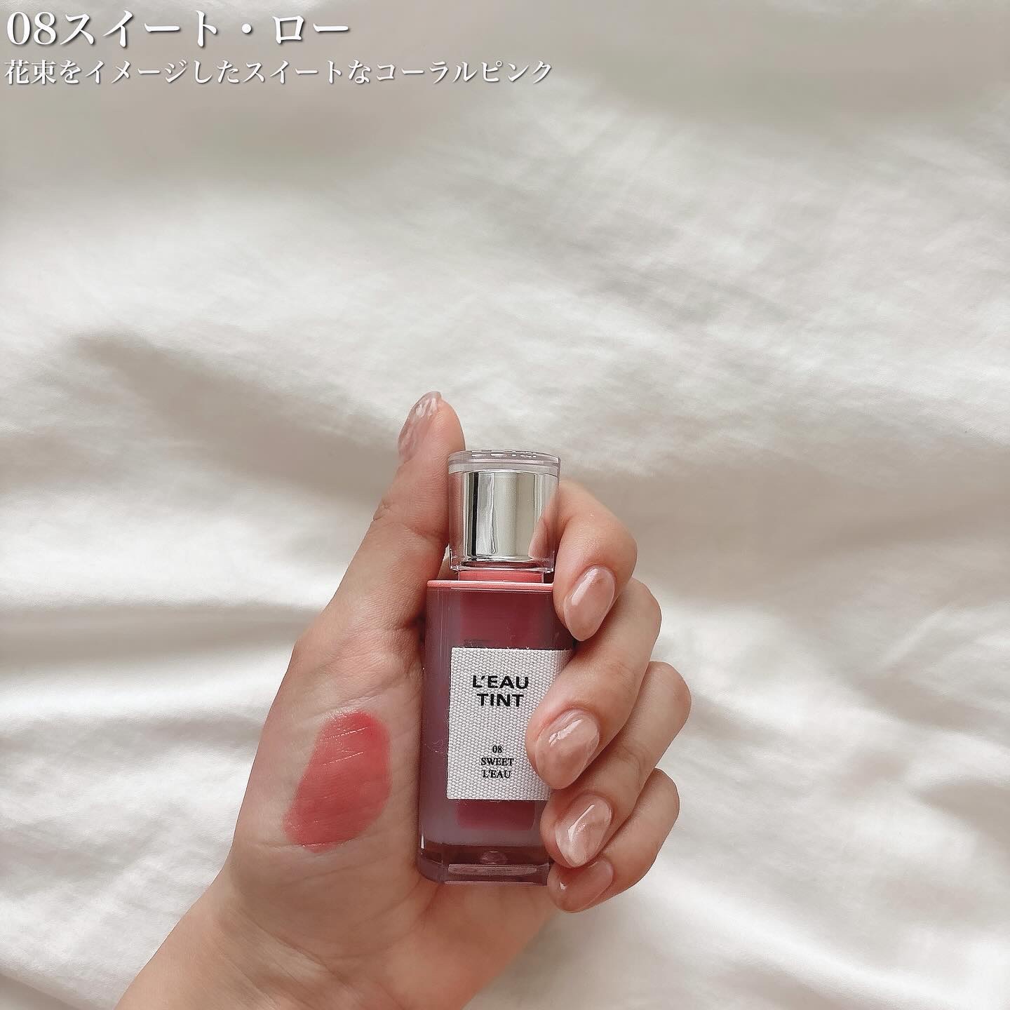 飲み会リップレビュー。つけてることを忘れそうな軽いつけ心地のティント。とにかくテクスチャーが軽くて水のように軽やか。ほどよい水光ツヤでベタつきを感じません。08スイート・ローしっかり発色して鮮やかなベリーカラー私はティントで唇が荒れるこ...