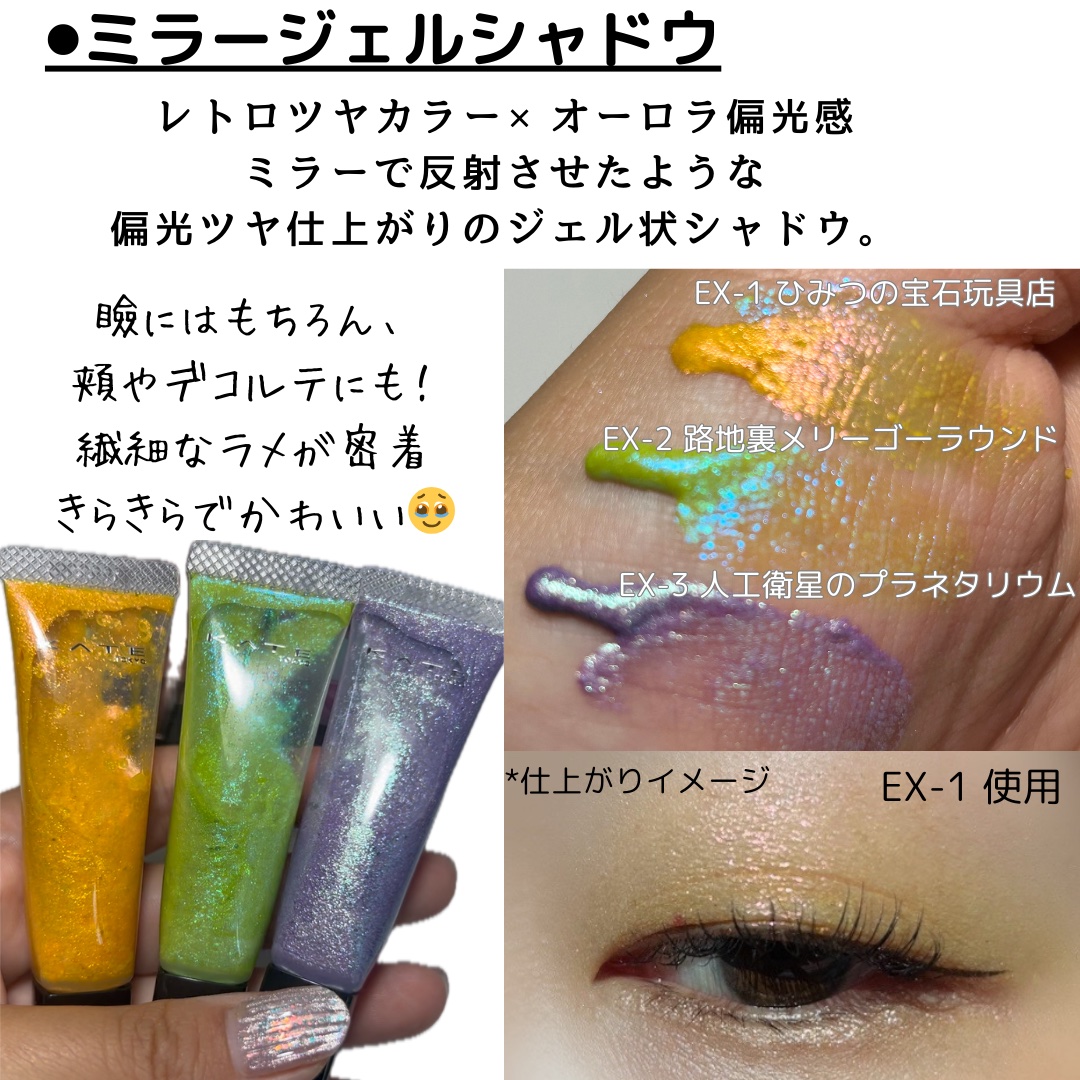 今回の限定コレクションは「超艶 未来感✕レトロカラー」がテーマ!このバーチャルリップバームもレトロ可愛いカラバリと近未来的超艶「NEO艶」な仕上がりが特徴! 柔らかな水あめのようにとろけるバームがピタッと密着。高いツヤ感が出るワックス系処方が採用されていて、重ねても透明感のあるちゅるんとした光沢感がすごい♡ 色とツヤを抱え込んだ透明感のある肉厚な仕上がりでむっちりちゅるちゅるッ!これが近未来的超艶「NEO艶」かっ!