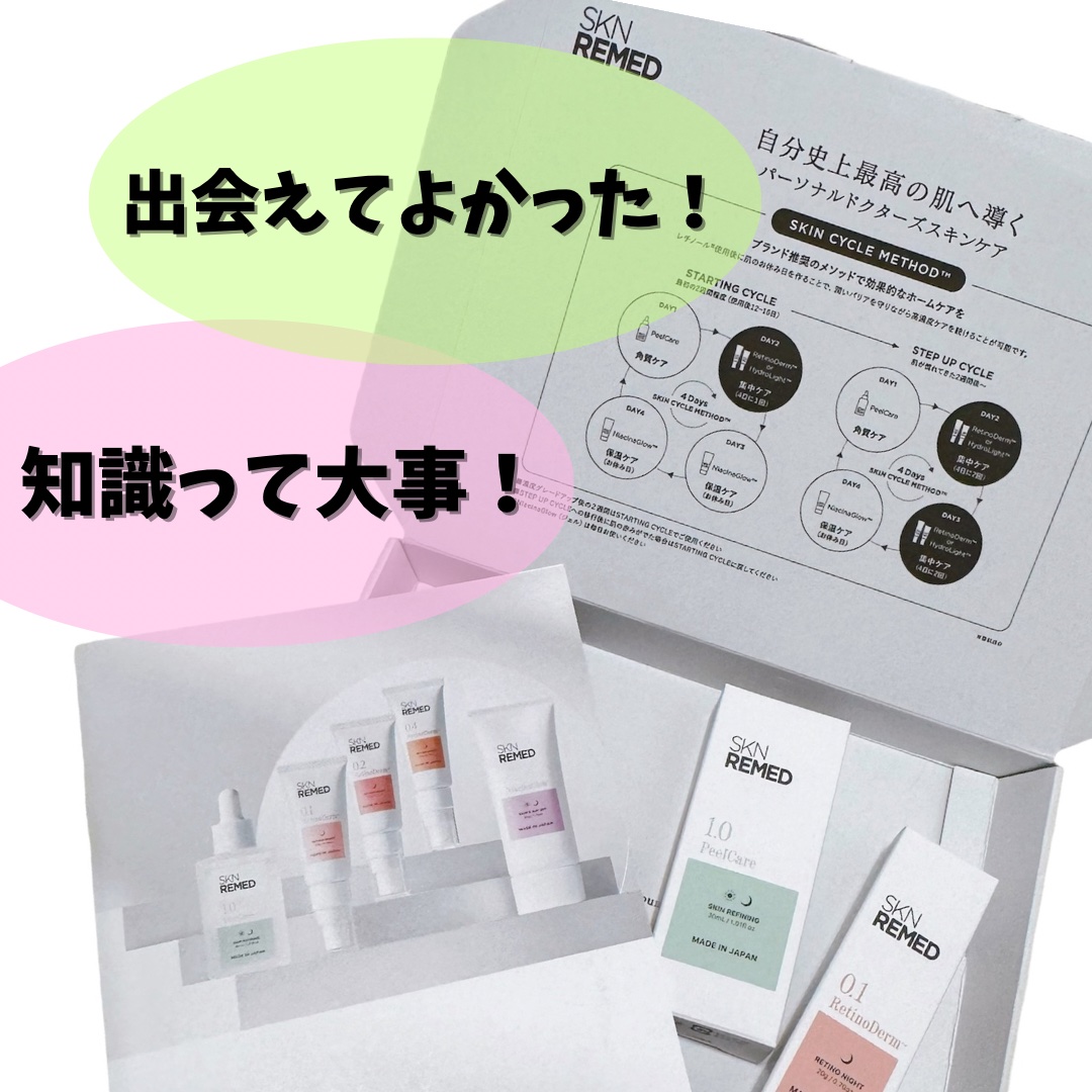 レチノールって、なかなかうまく使いこなせなくない? そんな時にしっかりメソッド、細かく使う頻度やレベルが選べる スキンサイクルメソッドは、毎日同じアイテムを使い続けません。 4日周期のルーティーン内で使い分けるお手入れ方法です。 通院不要で肌管理ができて、コスパも優秀だよ♡ レチノールは欲張り禁物だからゆっくり上手にケアがんばろ