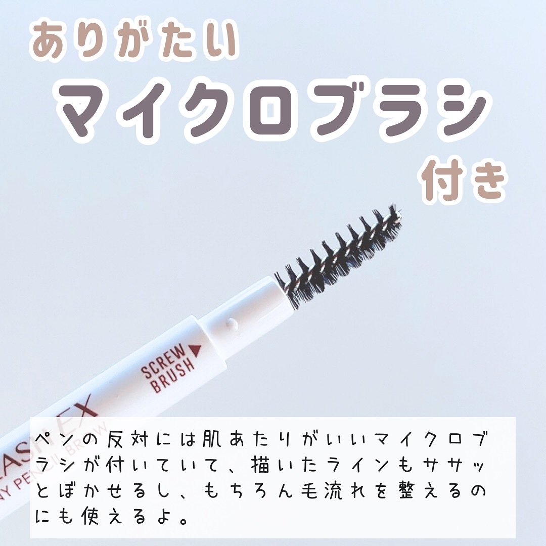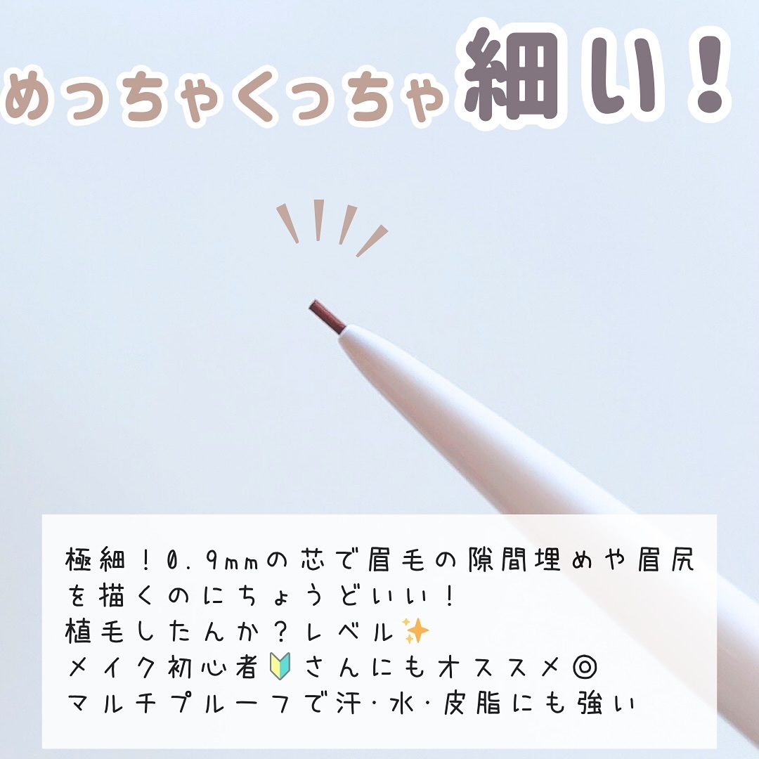 0.9mmの極細ペンシル×マイクロブラシで、眉毛を足したい部分に1本1本自眉のように描くことができる 自眉のような立体感のある眉毛を演出できます。ブラシも細めだからポイントでぼかすこともできて使い勝手がよいアイブロウ︎です😊