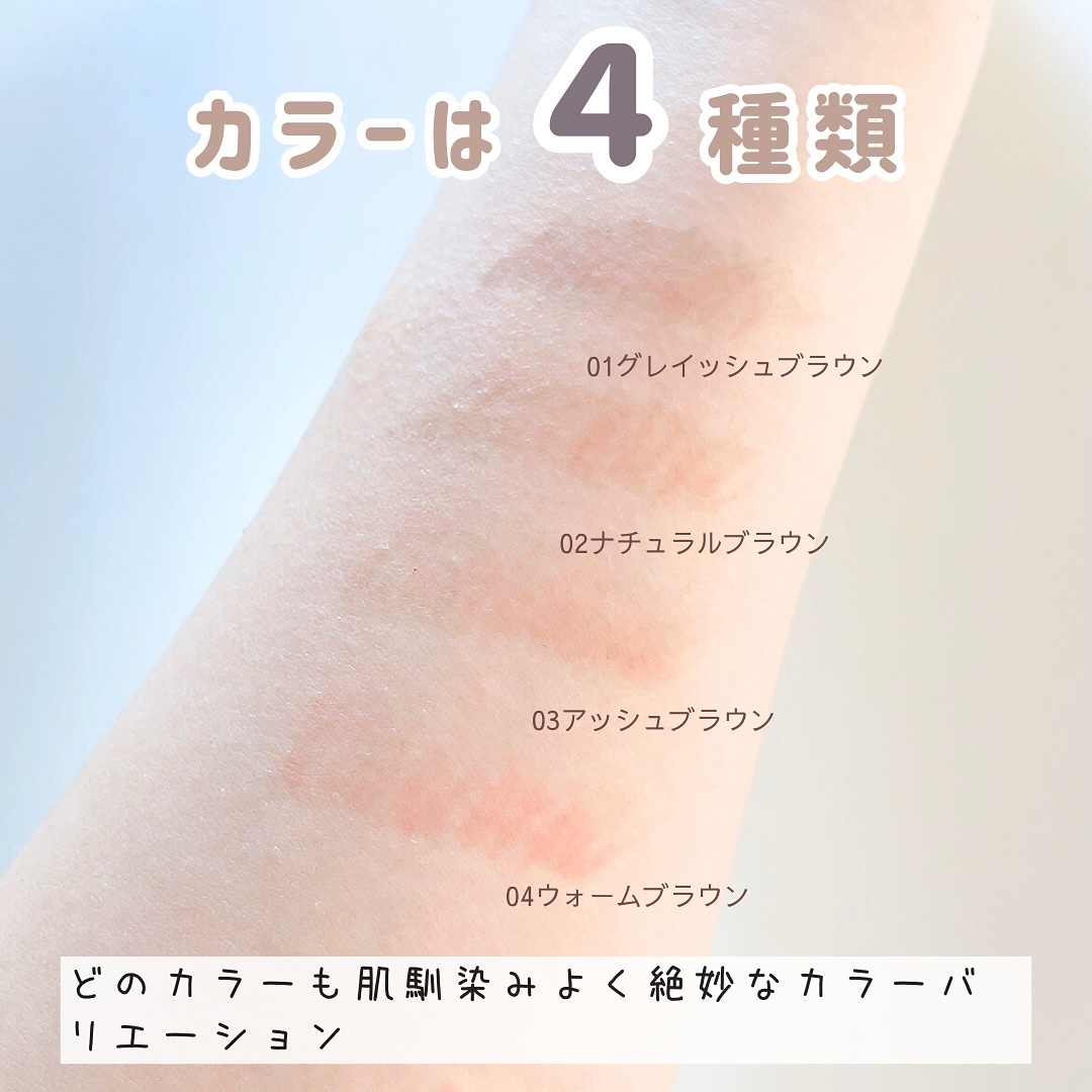 ブラシ部分が少し短くて角度がついてるの。 これが地肌に付きにくくてかなりすきなポイント♡ カラーもふんわり自然で 眉毛も液でカチカチになることもなかったよ。 どんな髪色にも馴染んでくれそうだなぁと思った◎
