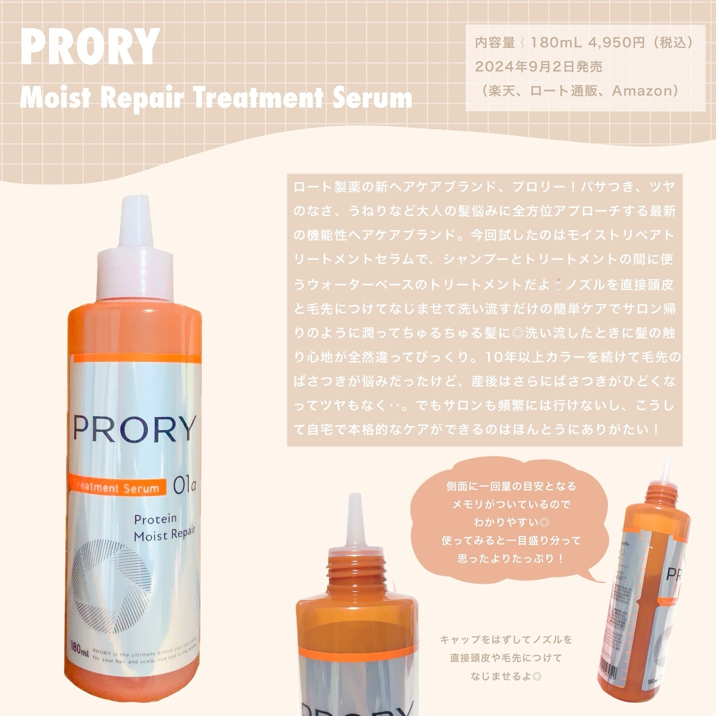 🤍PRORY(プロリー)モイストリペアトリートメントセラムプレキャン当選でいただきました🙂↕️髪と頭皮の集中ケア🪄ダメージによる大人の髪悩みにアプローチしてくれるロート製薬のヘアケアPRORY(プロリー)シャンプー後に使うプロテイン※配合の...