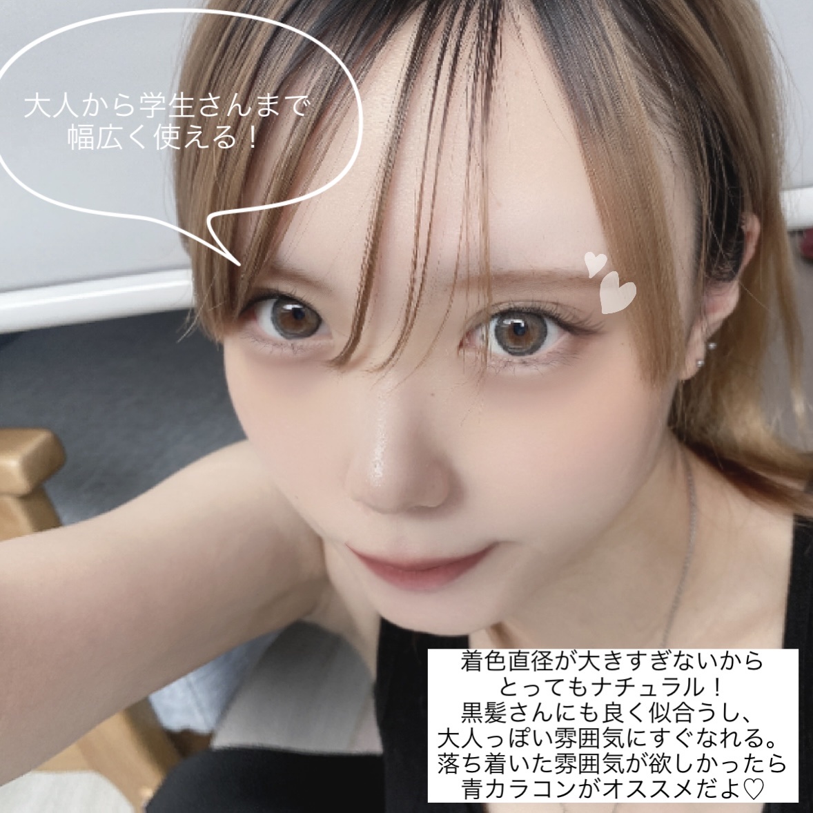 ナチュラルに盛れるブルーカラコン。 大人っぽい、涼し気な目元になるスグレモノ💎 黒髪さんでも、ハイトーンさんでも似合っちゃうすごく心強いカラコンなんです✨️ 迷わずにCOLORSのBLUE BASE GLAY、使ってみて下さい😊