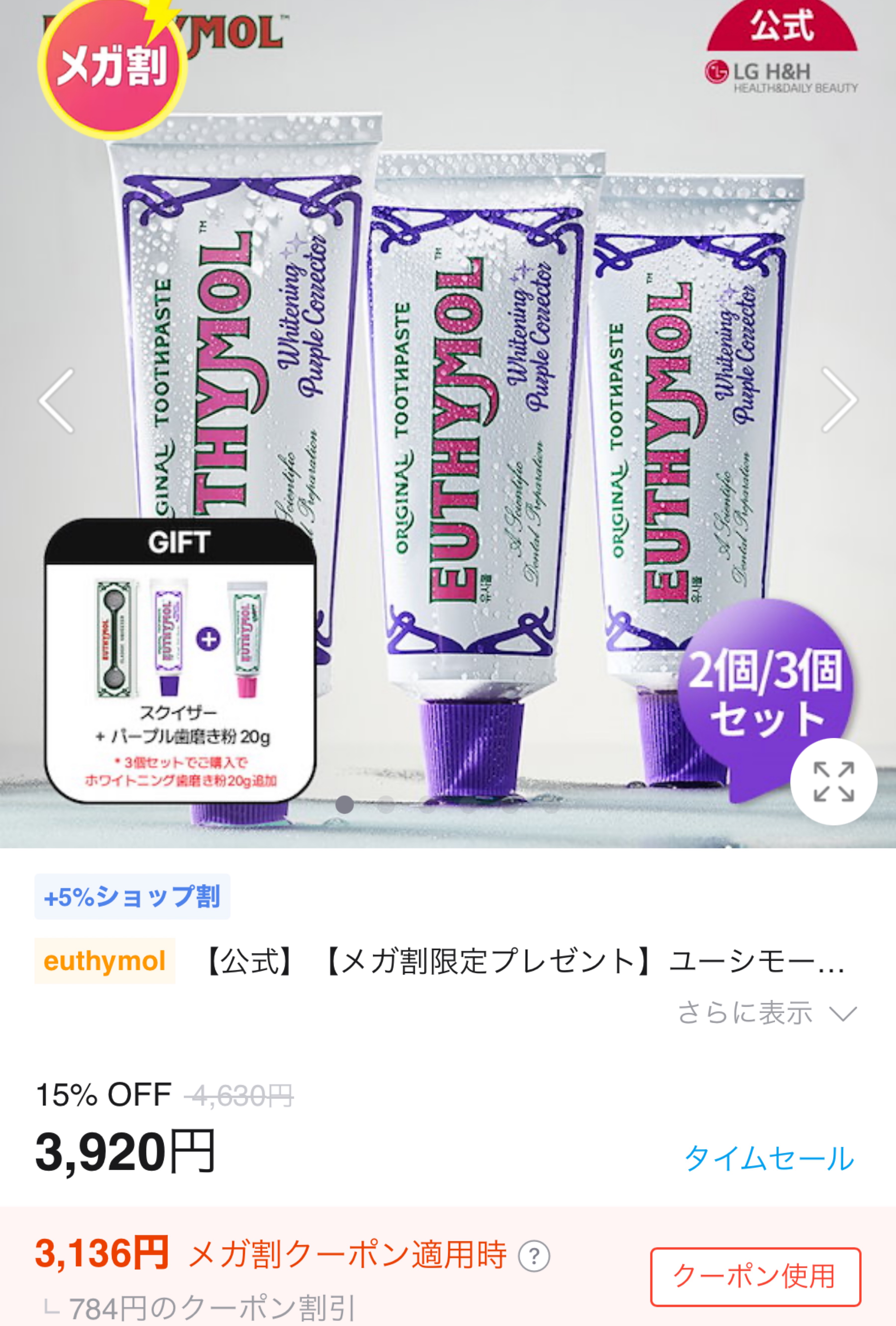 EUTHYMOL ホワイトパープル歯みがき ピーチフローラルミントの香り | 1,738円 |