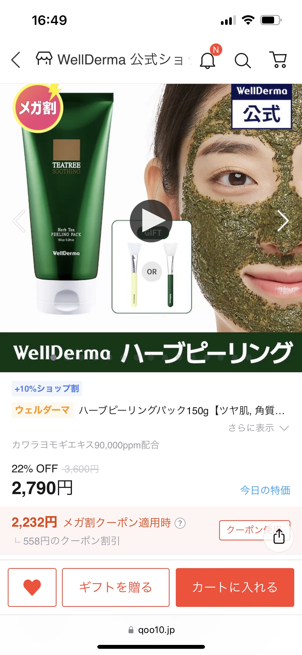 WellDerma ティーツリーハーブピーリングパック | 2,420円 |