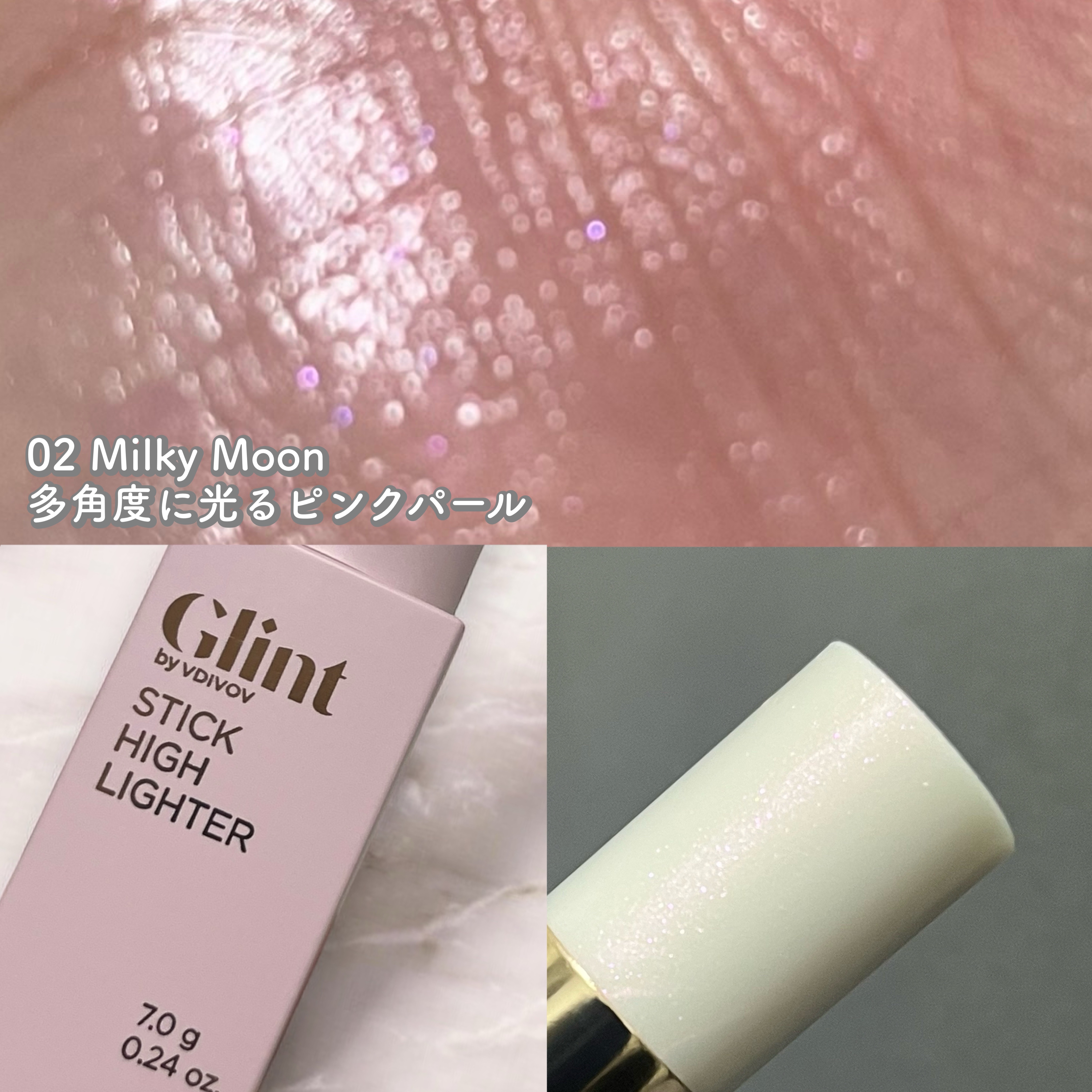 透明に輝くシースルー保湿光演出✨ 01 Dewy Moon 月明りがしっとりと舞い降りたように透明に輝くパールが顔色を自然に明るくする 流れ星のように多角度に光るピンクパールが顔色を鮮やかにするミルク色パールスティック うるっとした艶感が出るのでビームのようなハイライターが苦手な方も断然使いやすいパール感でした!